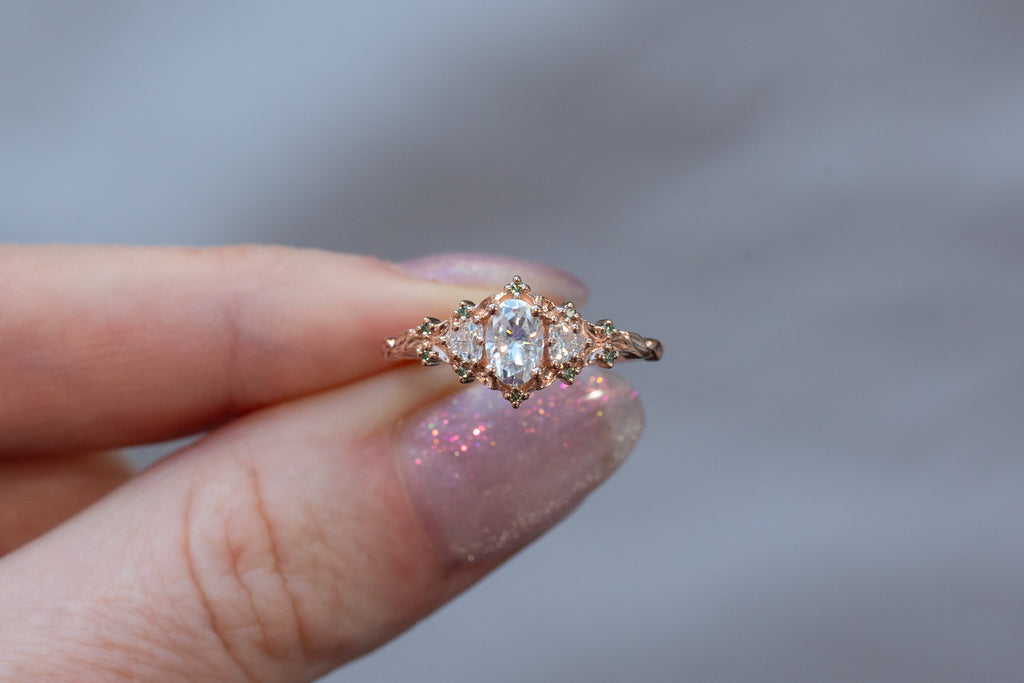 READY TO SHIP - Size 7, 14k Rose Gold Briar Rose Three Stone