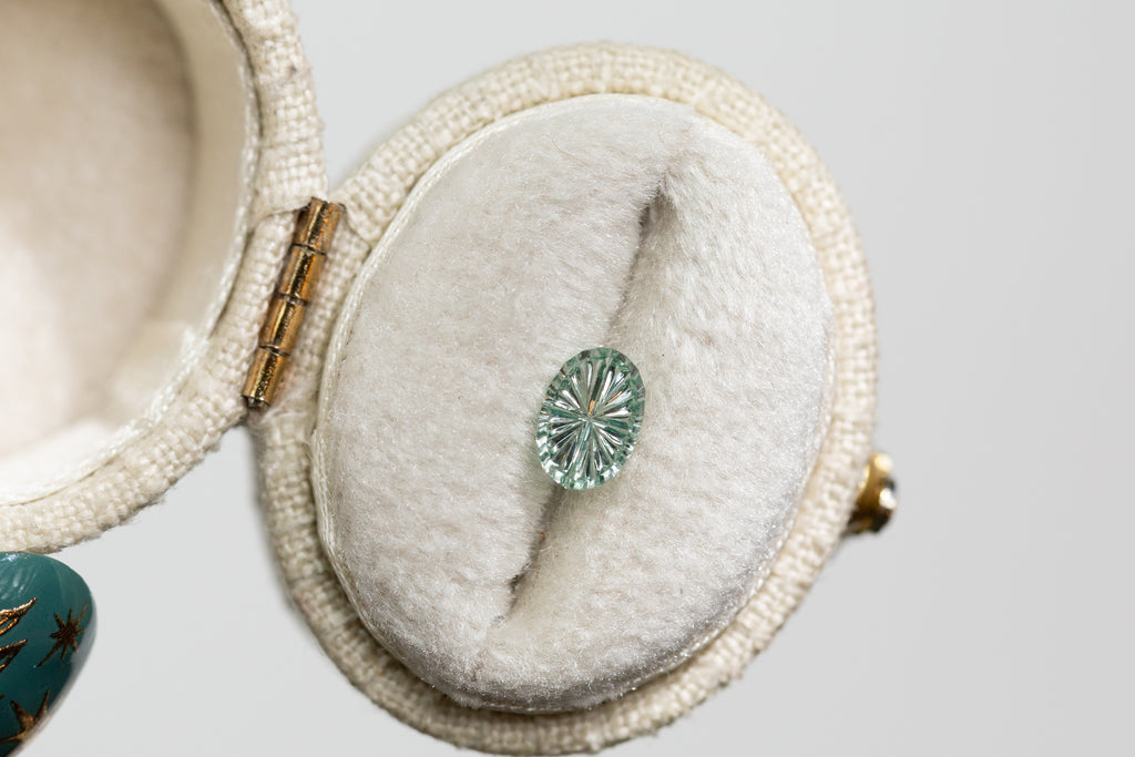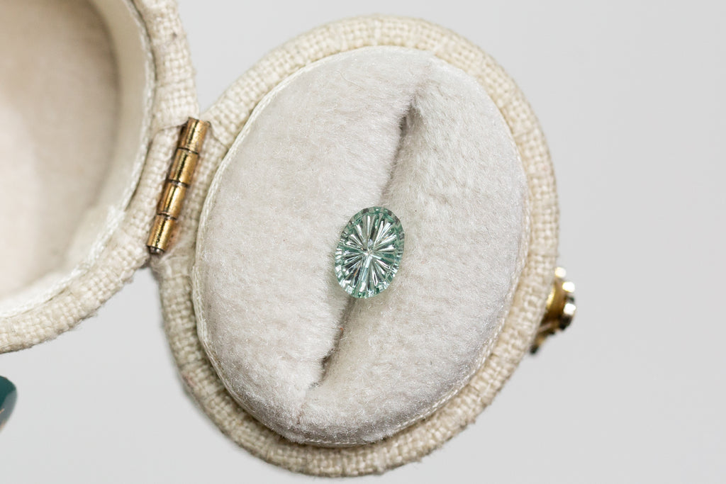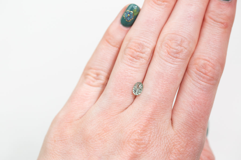 0.70ct Oval Grayish Blue Green Sapphire - Starbrite cut by John Dyer