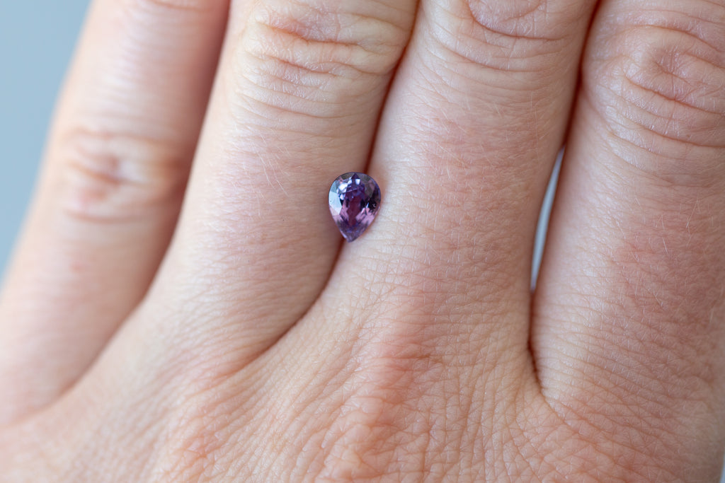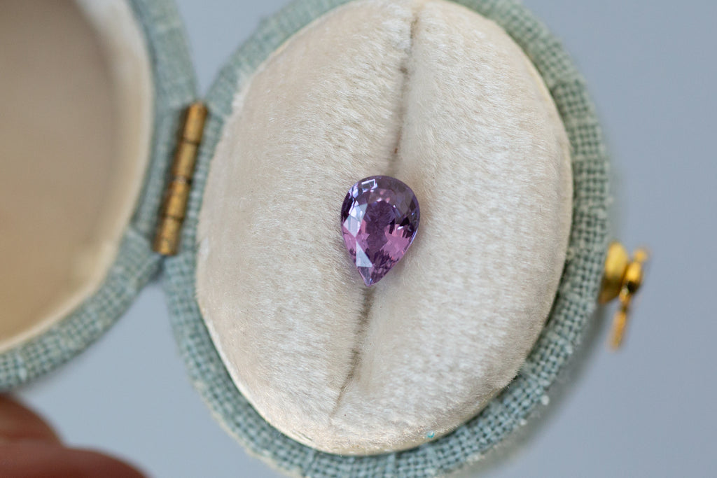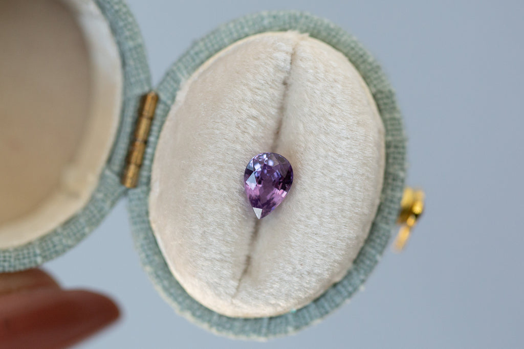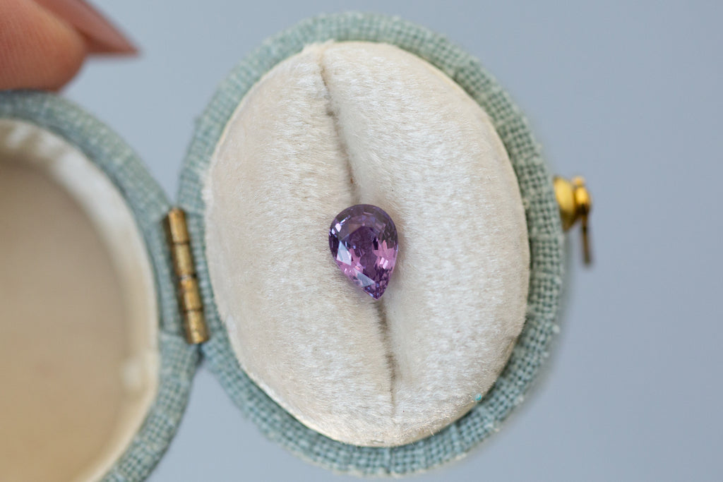 The prettiest pear purple sapphire! Such beautiful coloring and sparkle!