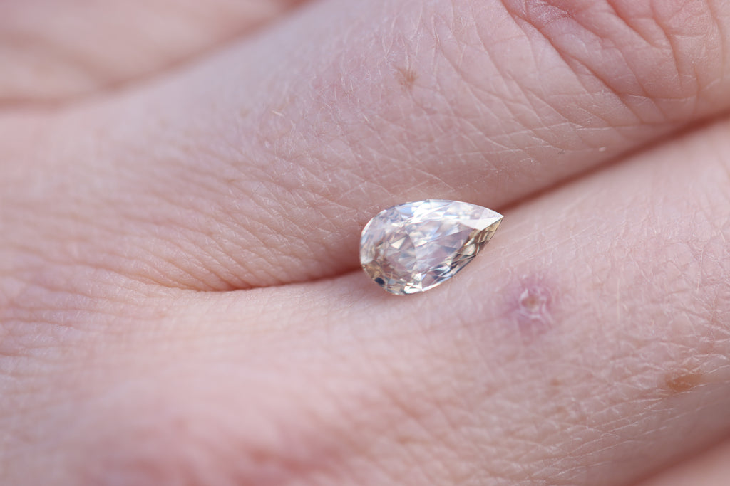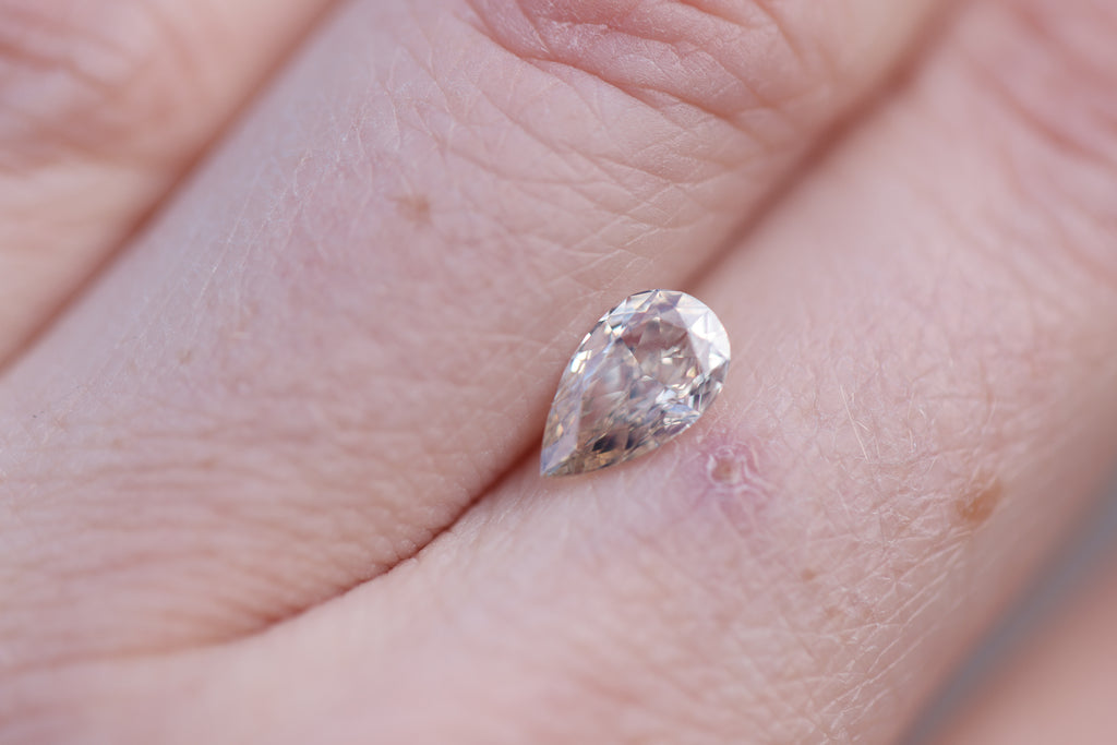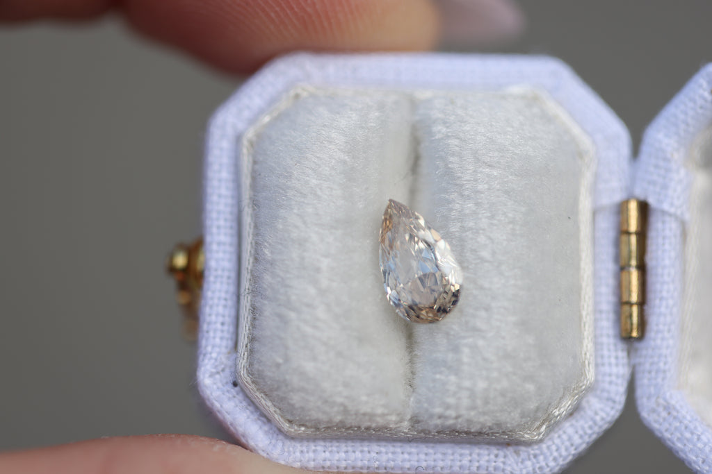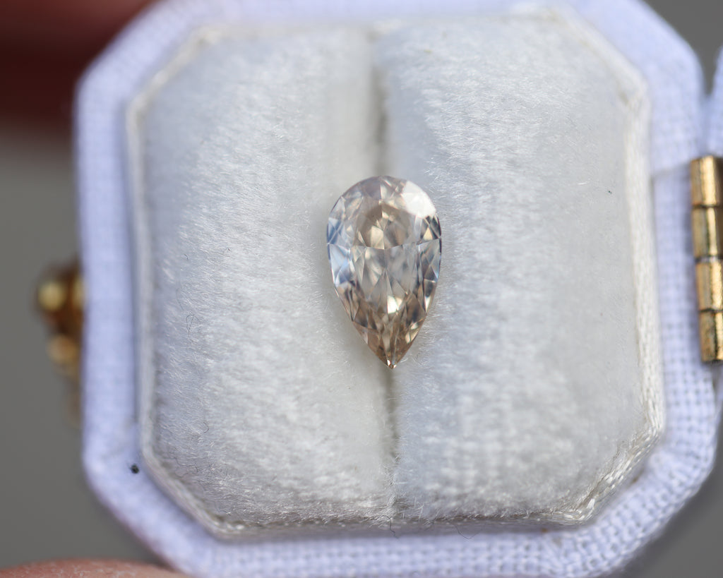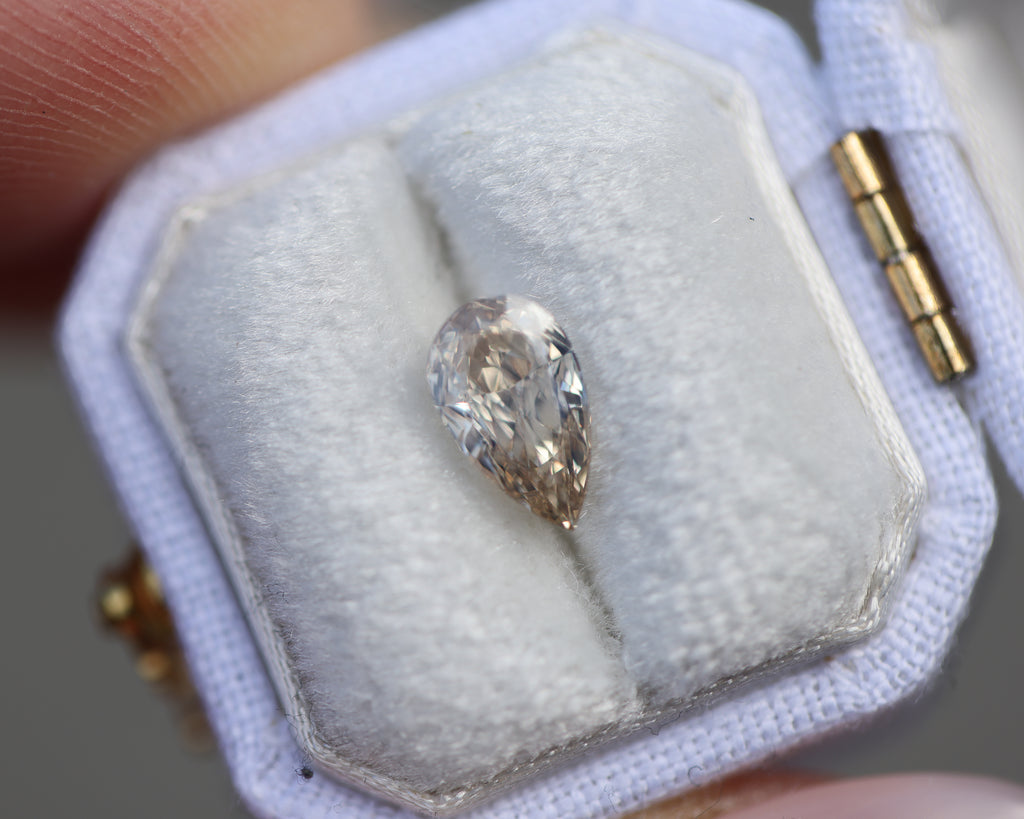 This absolutely stunning pear champagne diamond is just the most gorgeous stone! It has all the sparkle of a diamond with the added warmth of its coloring and is just incredible! So, so special!