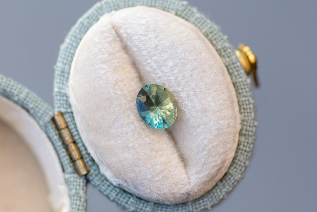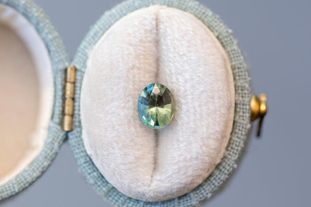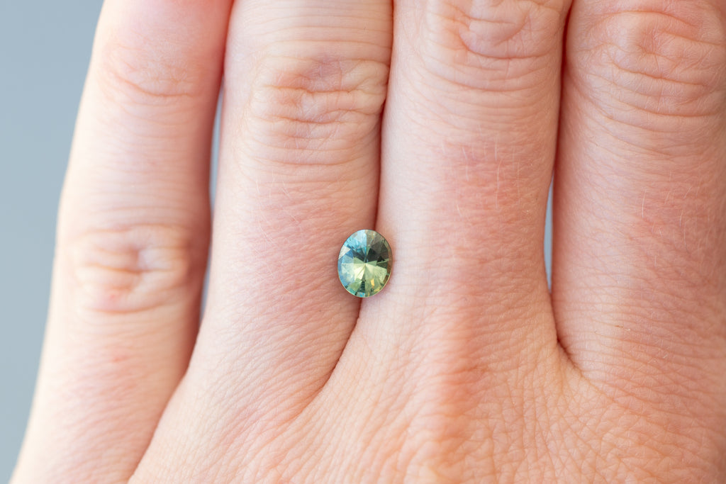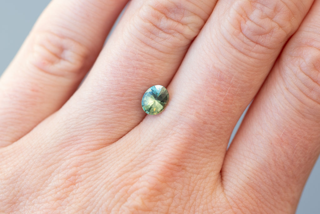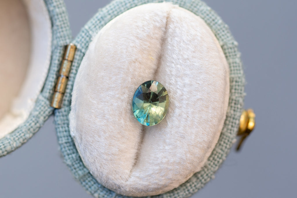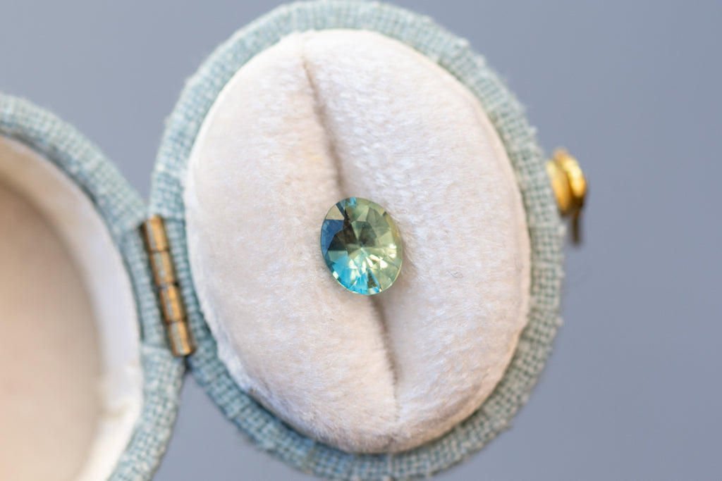 1.02ct Oval Light Green and Teal Sapphire