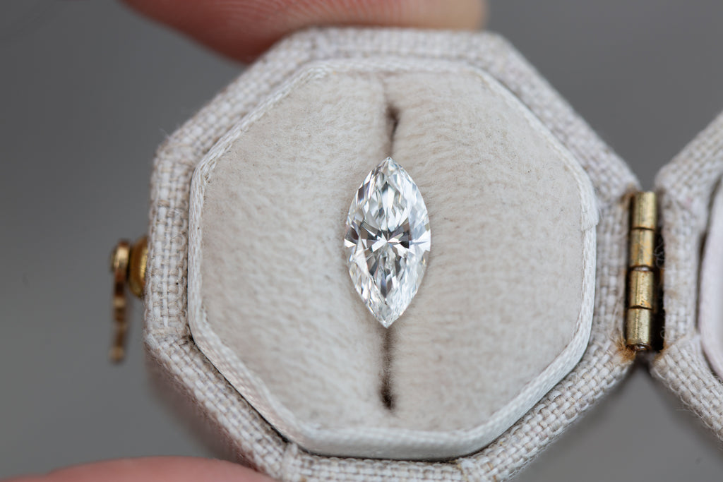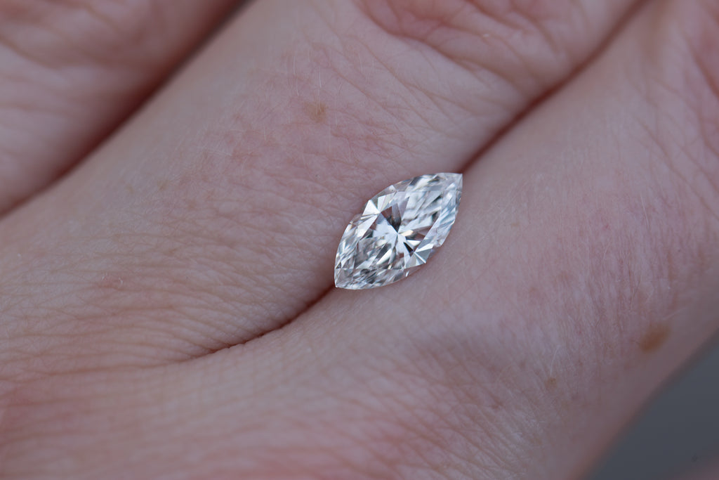 This absolute beauty is a stunning marquise lab grown diamond with gorgeous sparkle!
