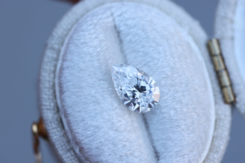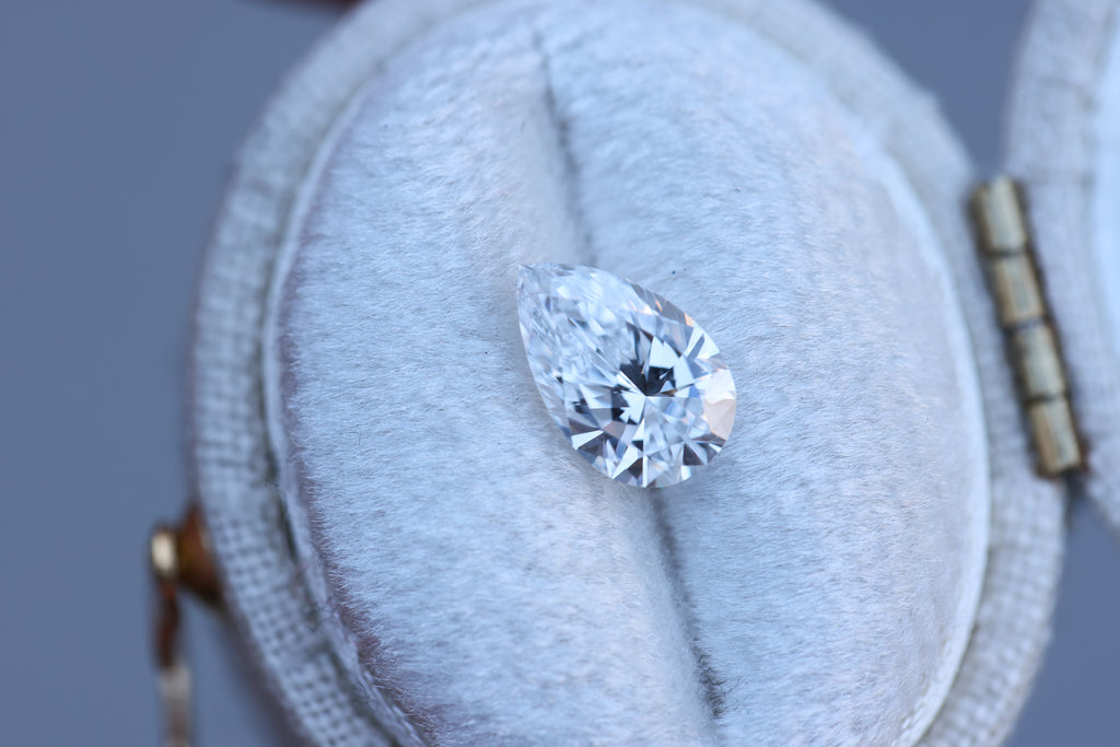 This beautiful pear lab diamond has just the prettiest sparkle and bright D color!