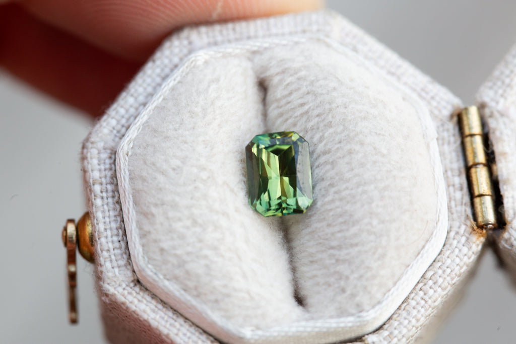 1.06ct emerald cut teal green sapphire