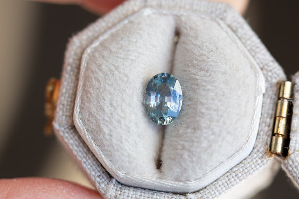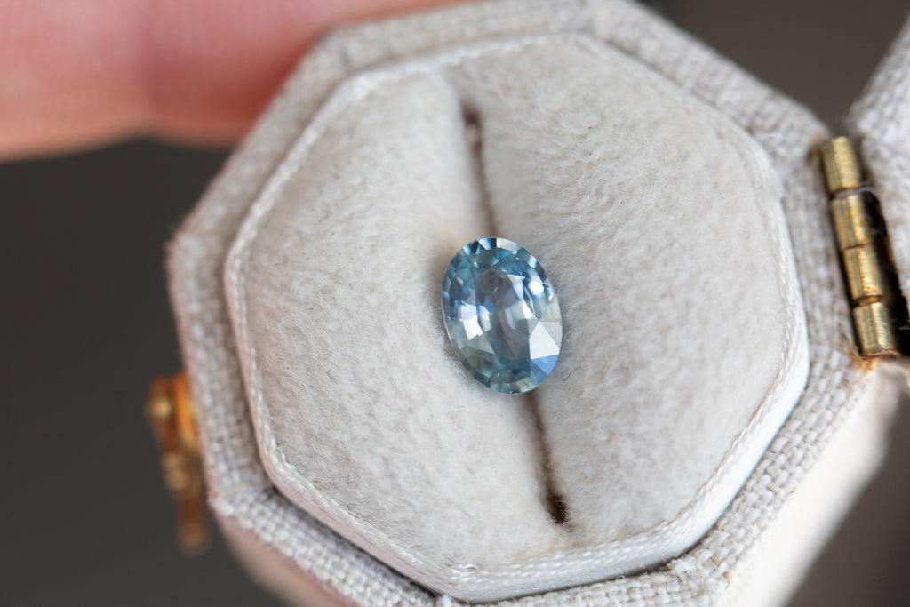 This lovely sapphire is a light blue with a hint of green tint - such a pretty stone!