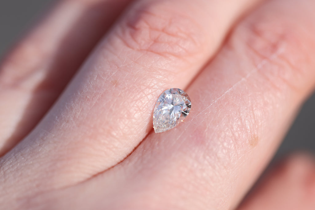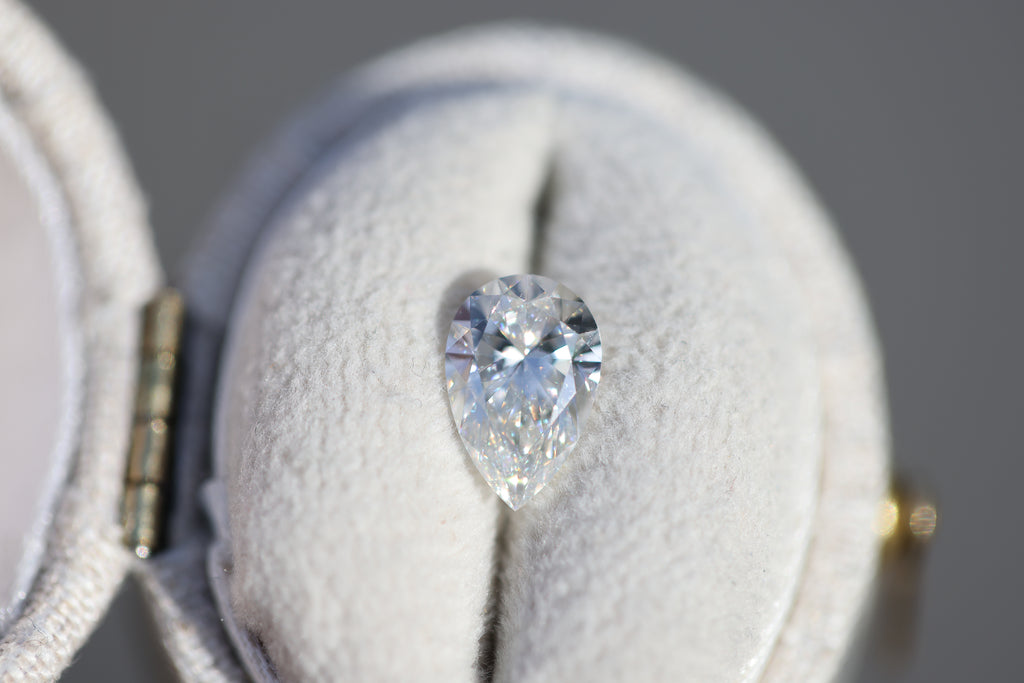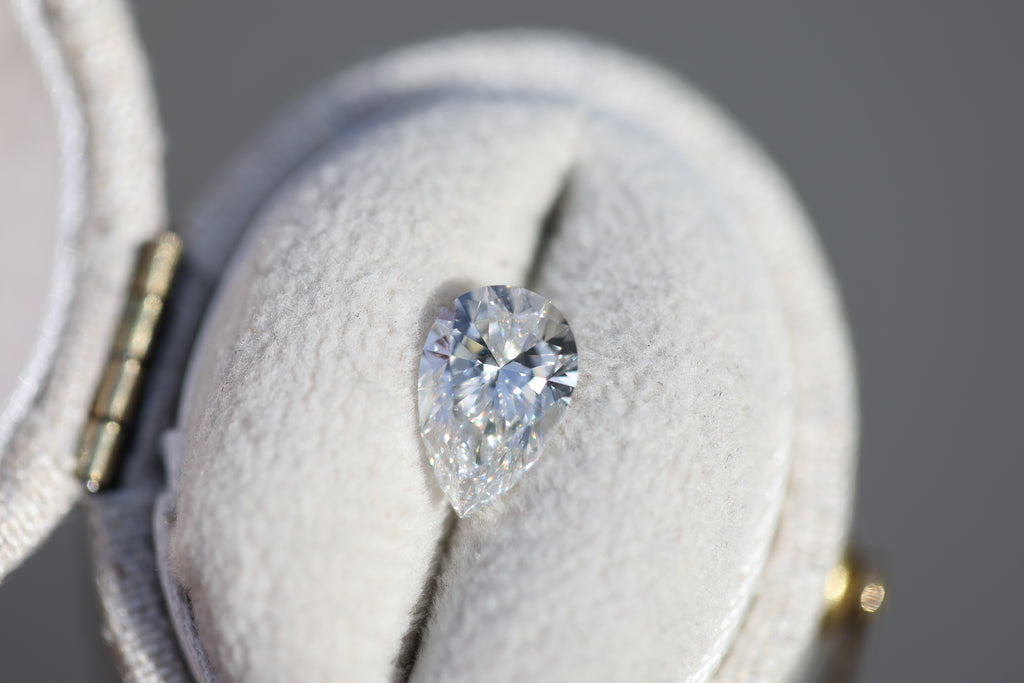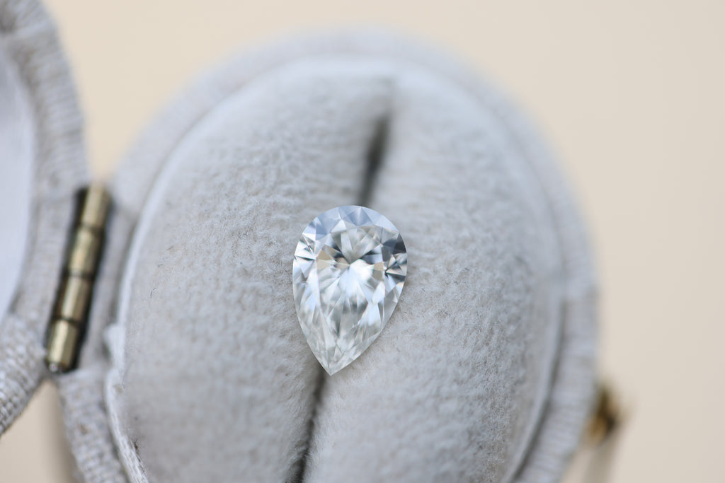 This beautiful pear lab created diamond has the most gorgeous sparkle!