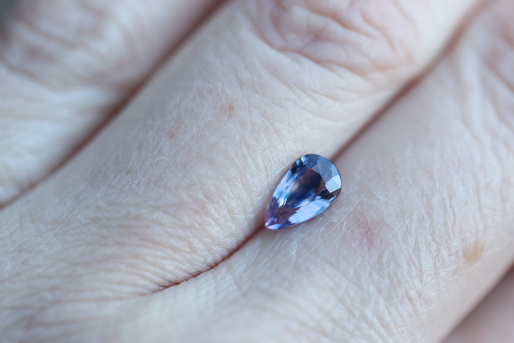 This absolute beauty is a pear sapphire with such rich purple blue coloring - so gorgeous!
