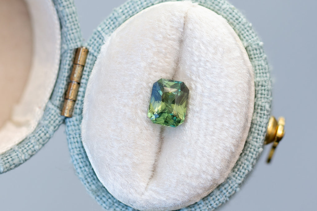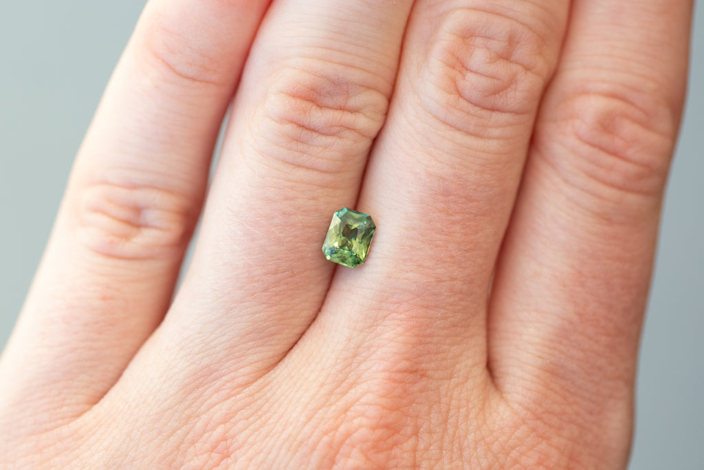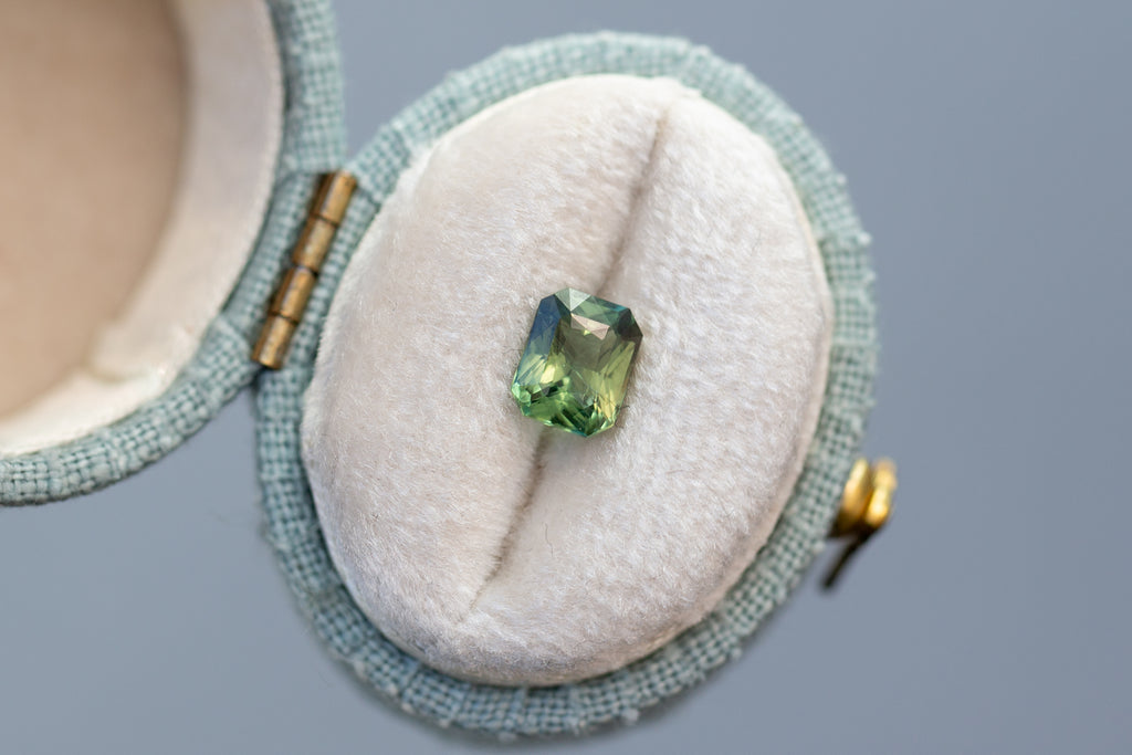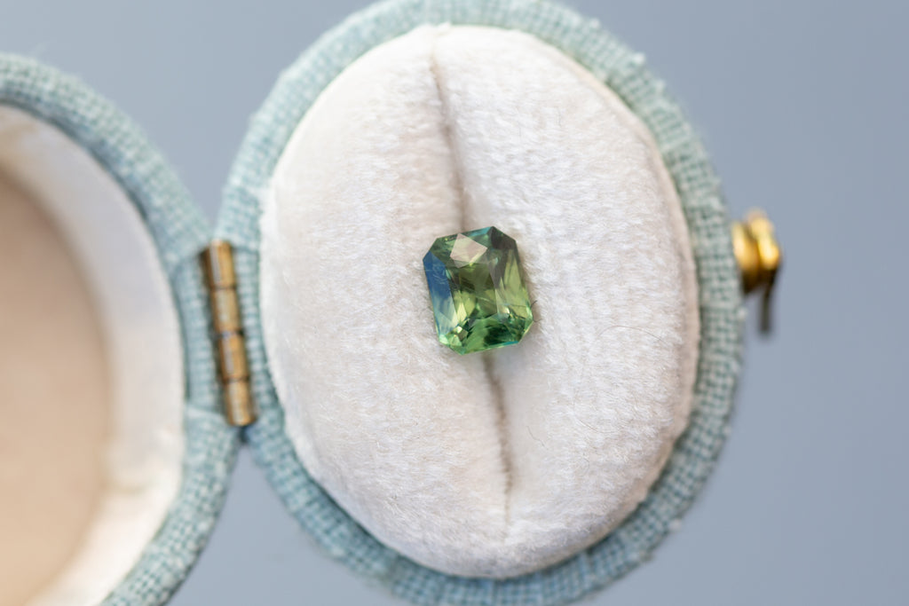 A true beauty, this stone is the prettiest green color with a unique inclusion.