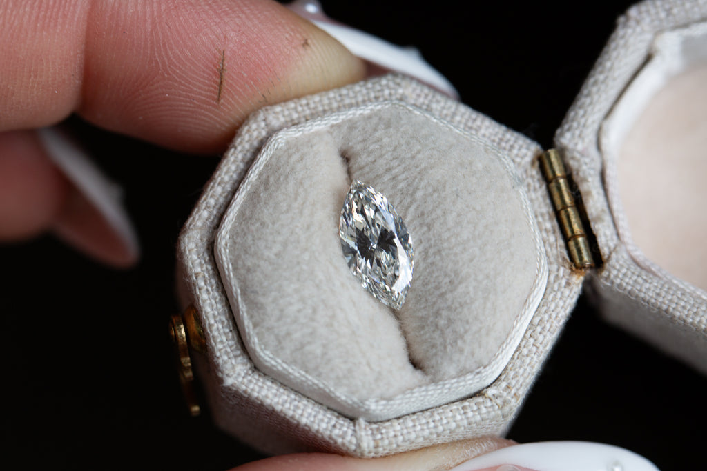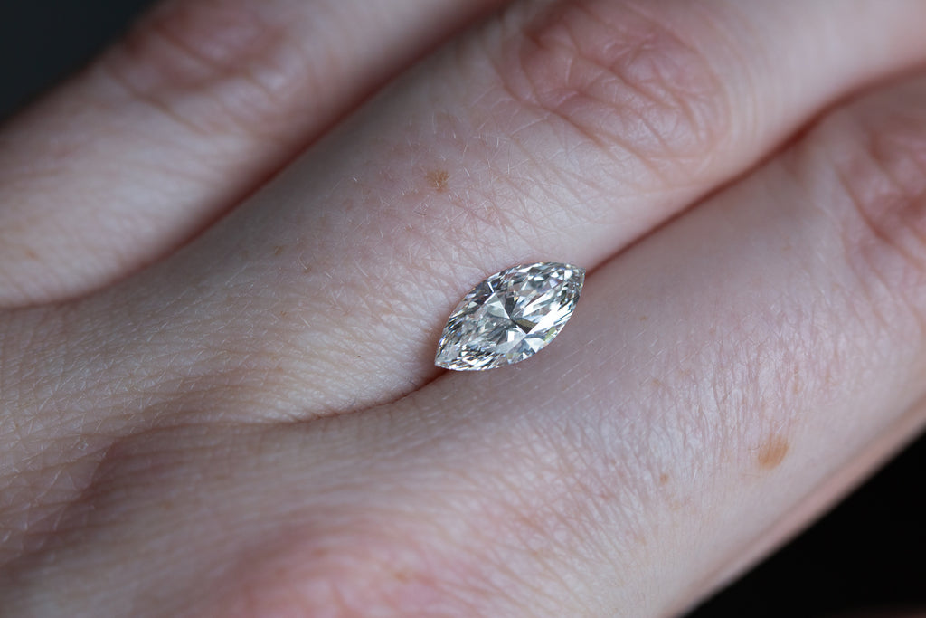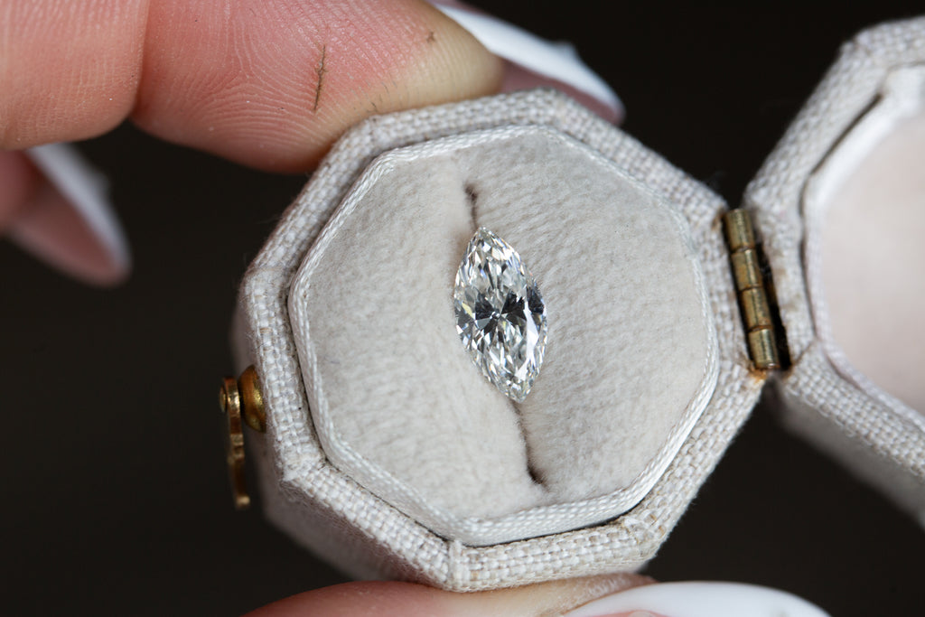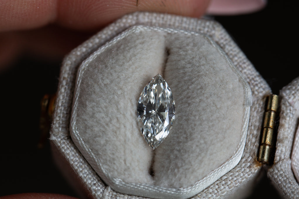 This beauty is a marquise lab grown diamond with tons of gorgeous sparkle!