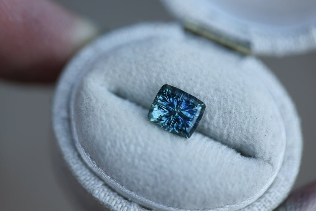 1.09ct rectangle blue green sapphire - Starbrite cut by John Dyer