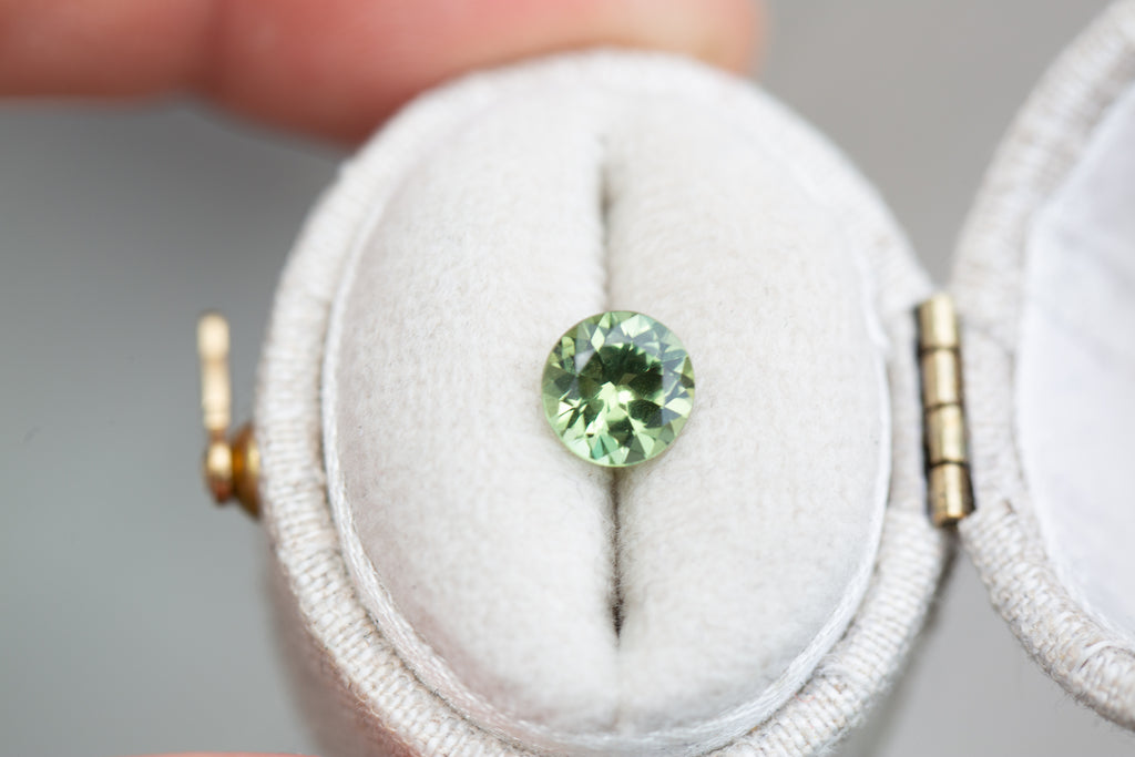 This beautiful sapphire is the prettiest medium green with lots of gorgeous sparkle!