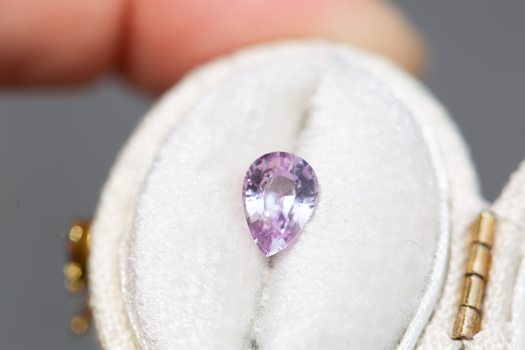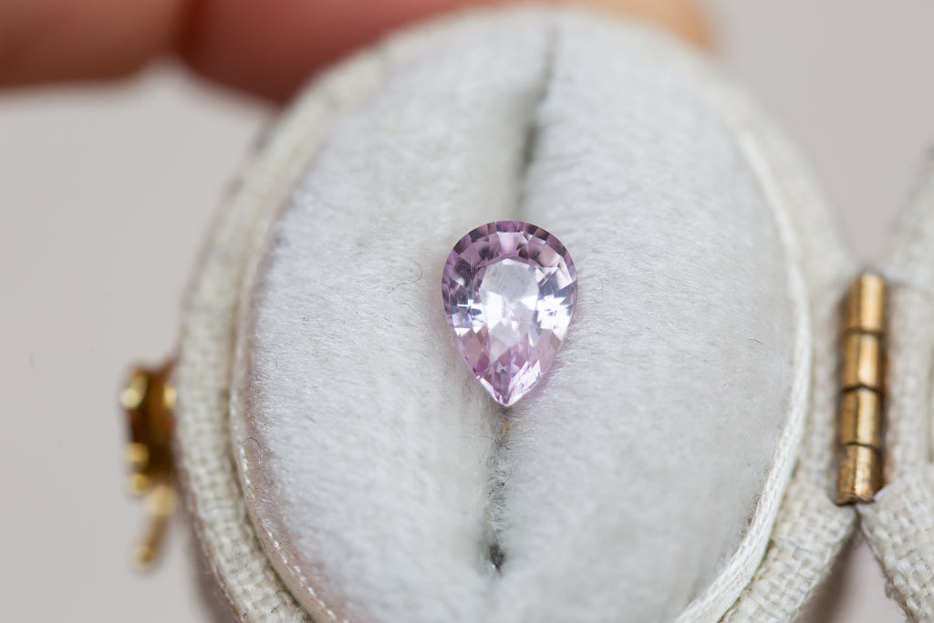 This beautiful pear sapphire is a light pretty pink full of sparkle!