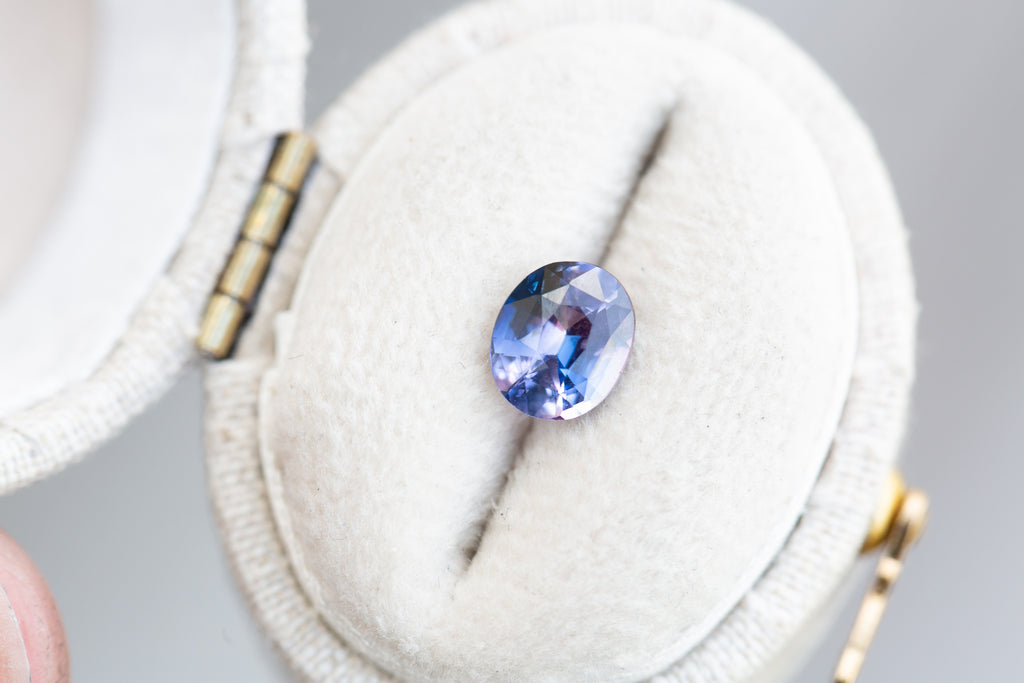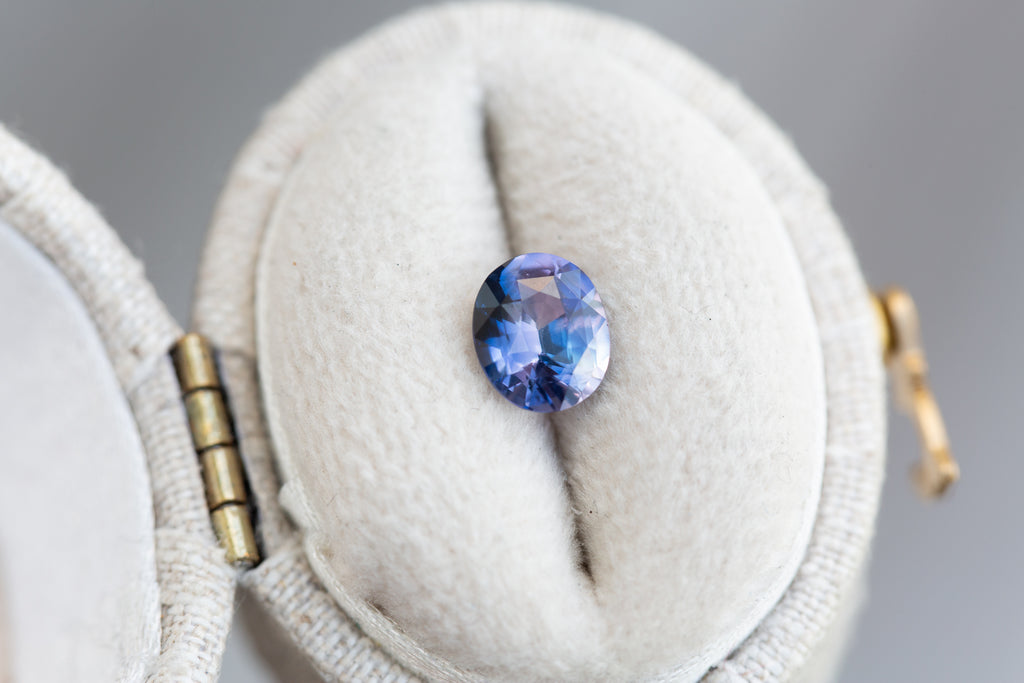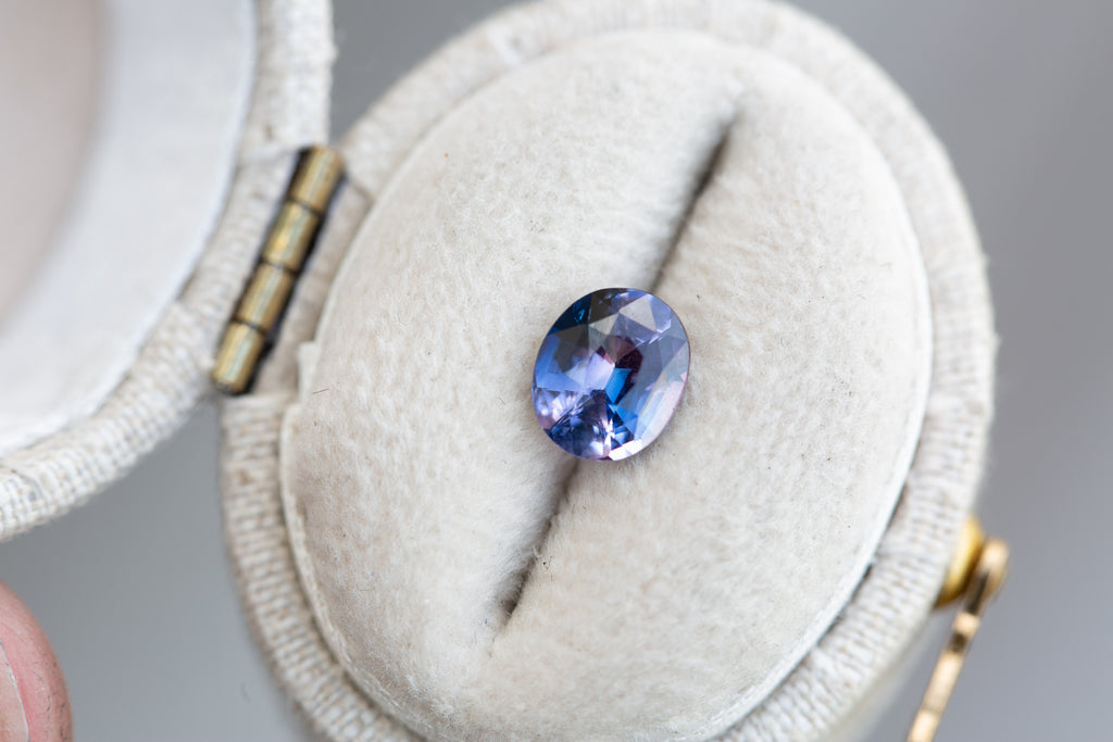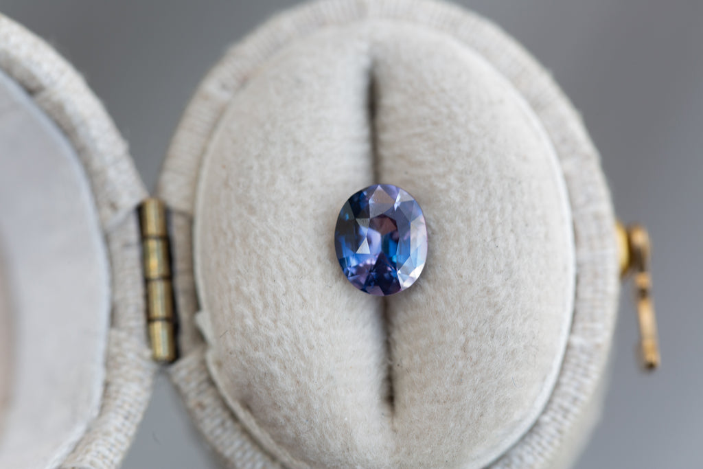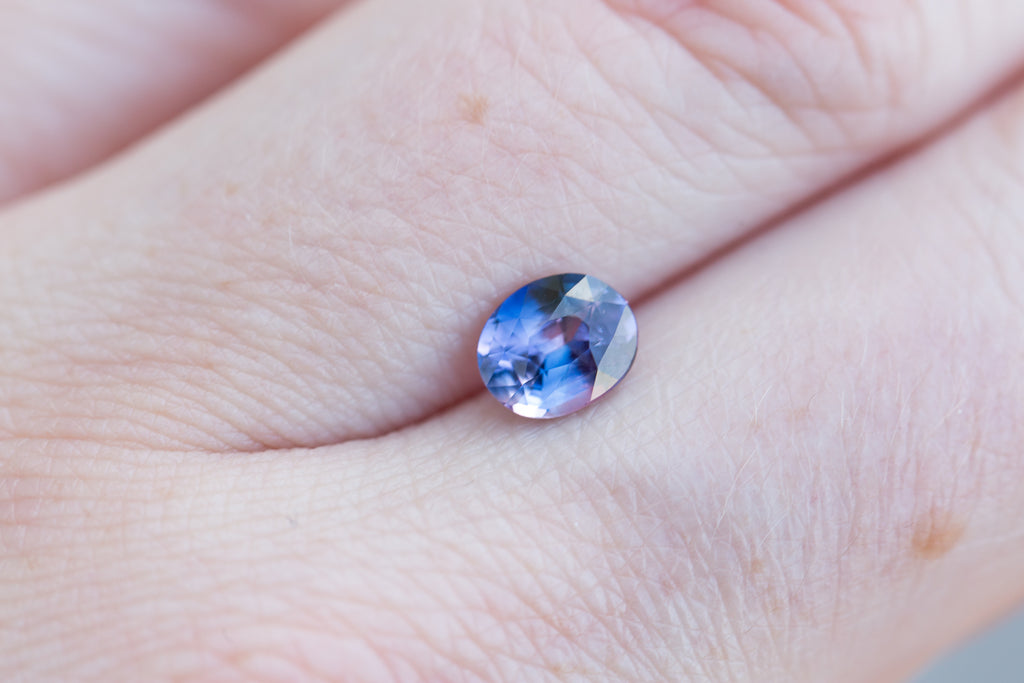 This absolutely magical bicolor sapphire has such regal coloring! It is a mostly purple/blue stone with a little pink and a lot of sparkle!