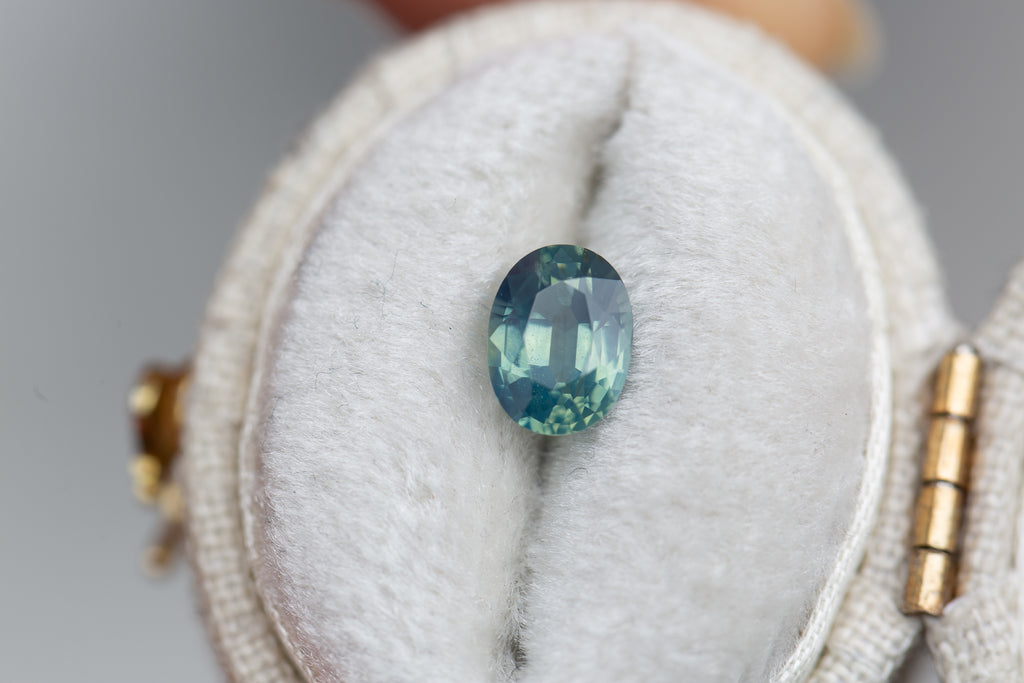 This gorgeous oval opalescent teal sapphire is like sunlight shining through the ocean waters - an absolute beauty!