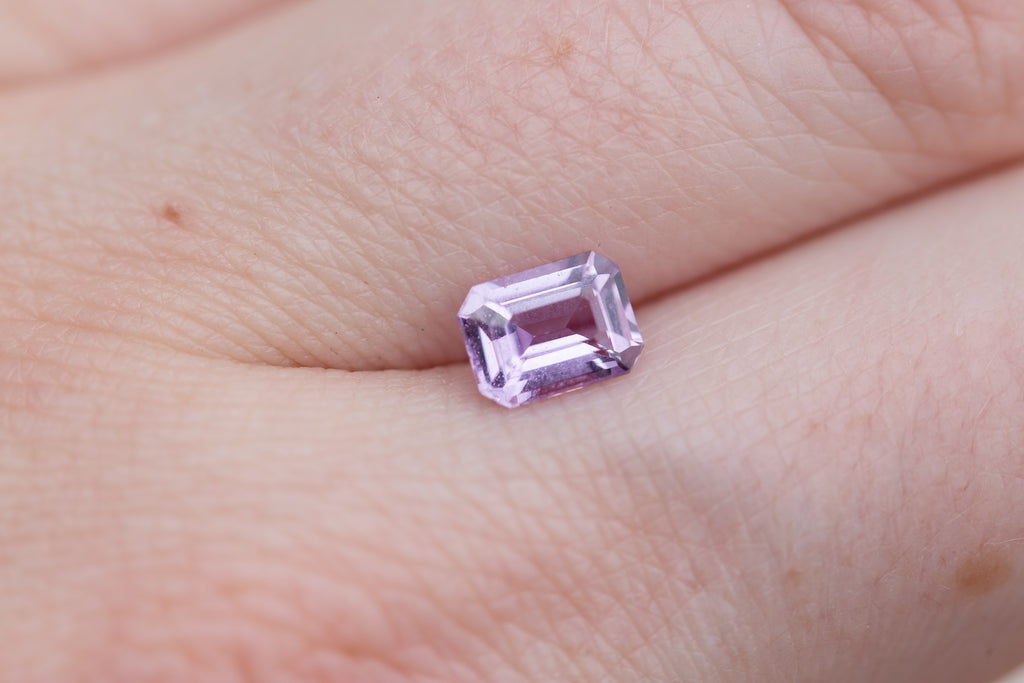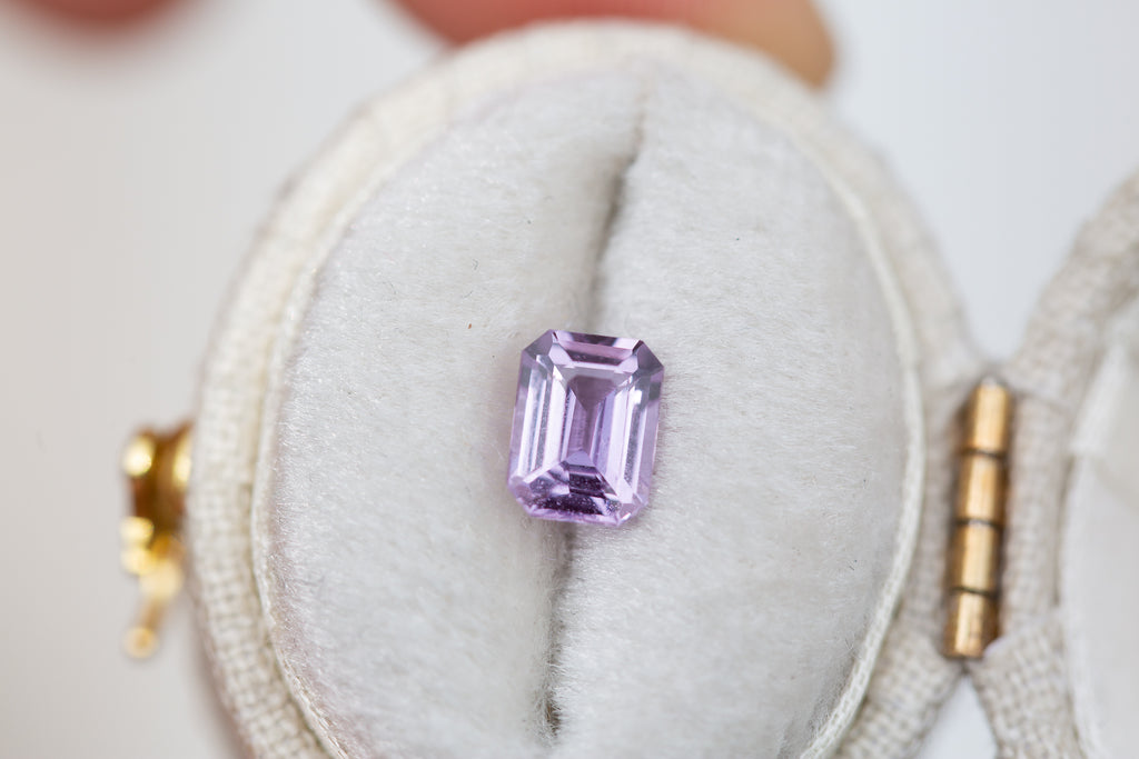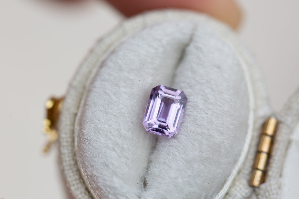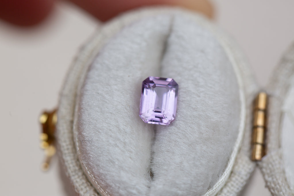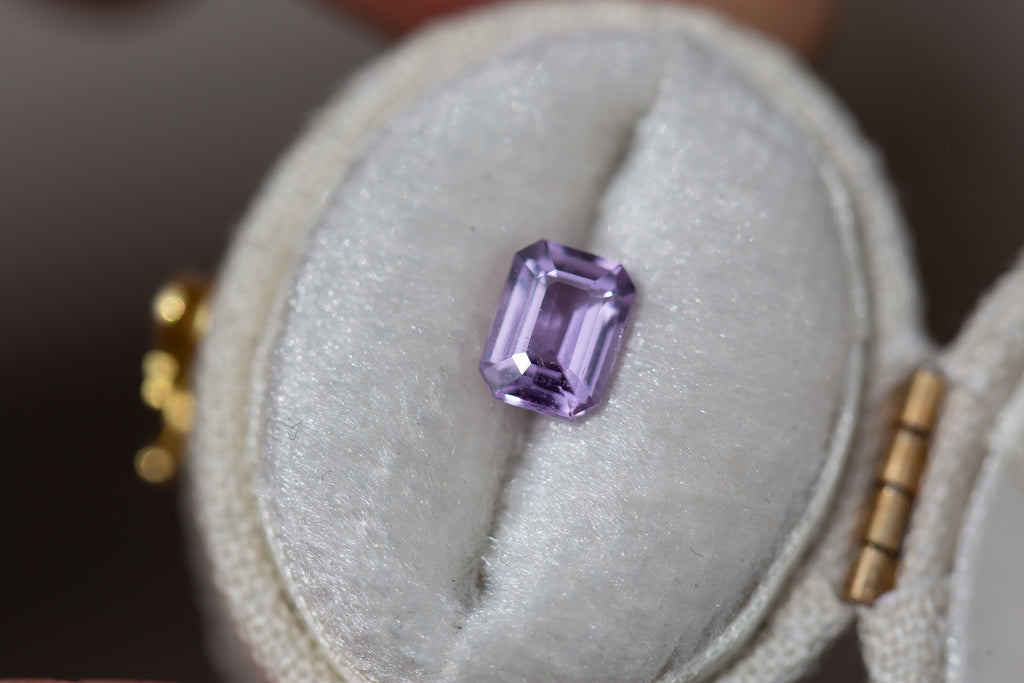 This stunning emerald cut sapphire is the prettiest lavender color and just such a beautiful stone!