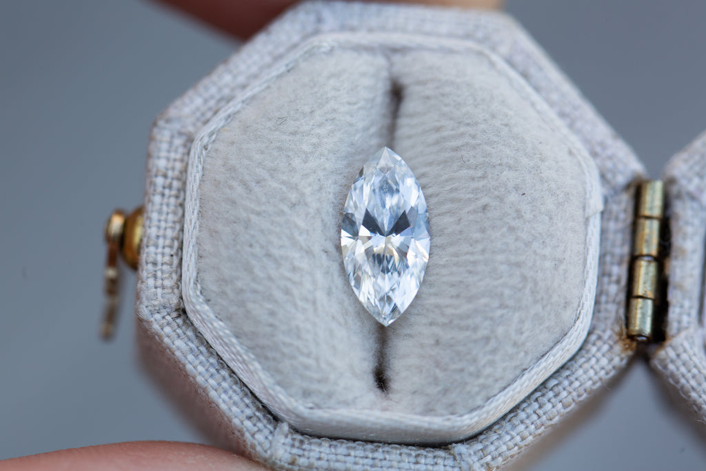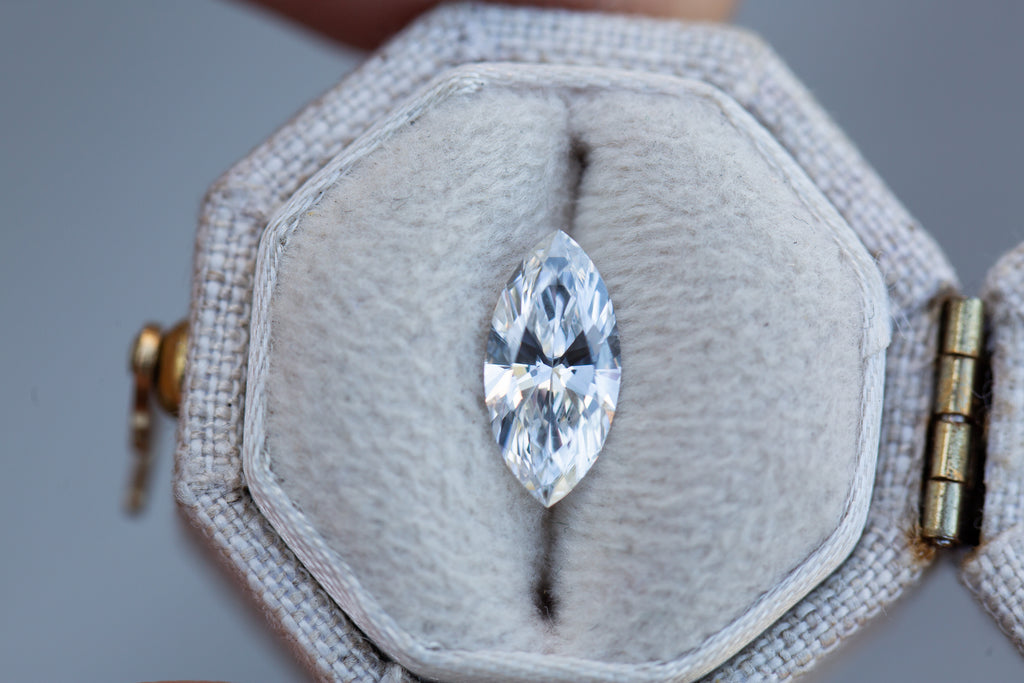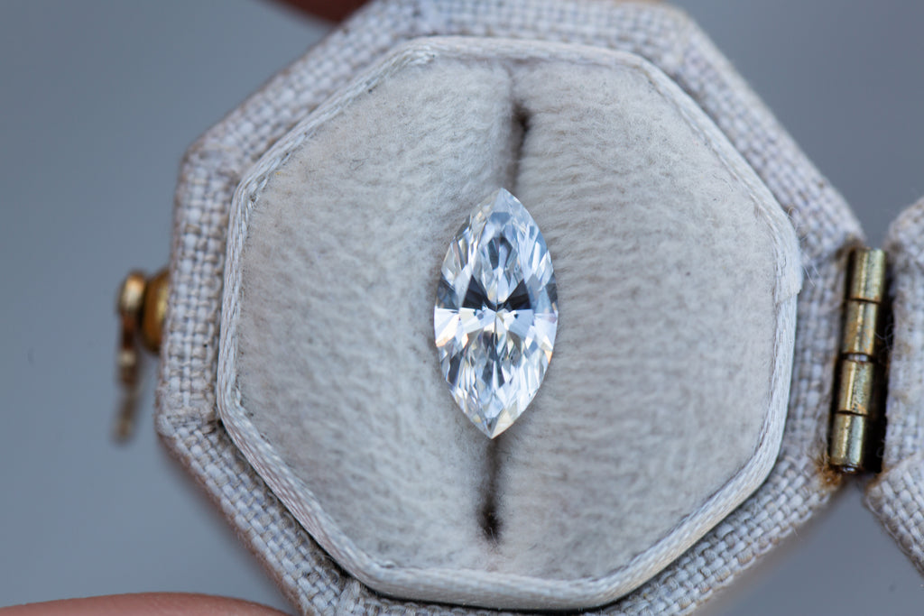 This absolutely stunning marquise lab grown diamond is bright and beautiful with its E color and packed with sparkle!