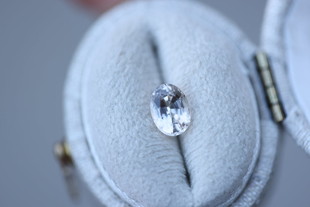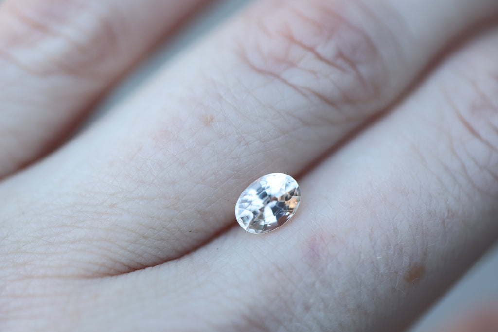 The absolute loveliest oval sapphire with such pretty light peach/white coloring!