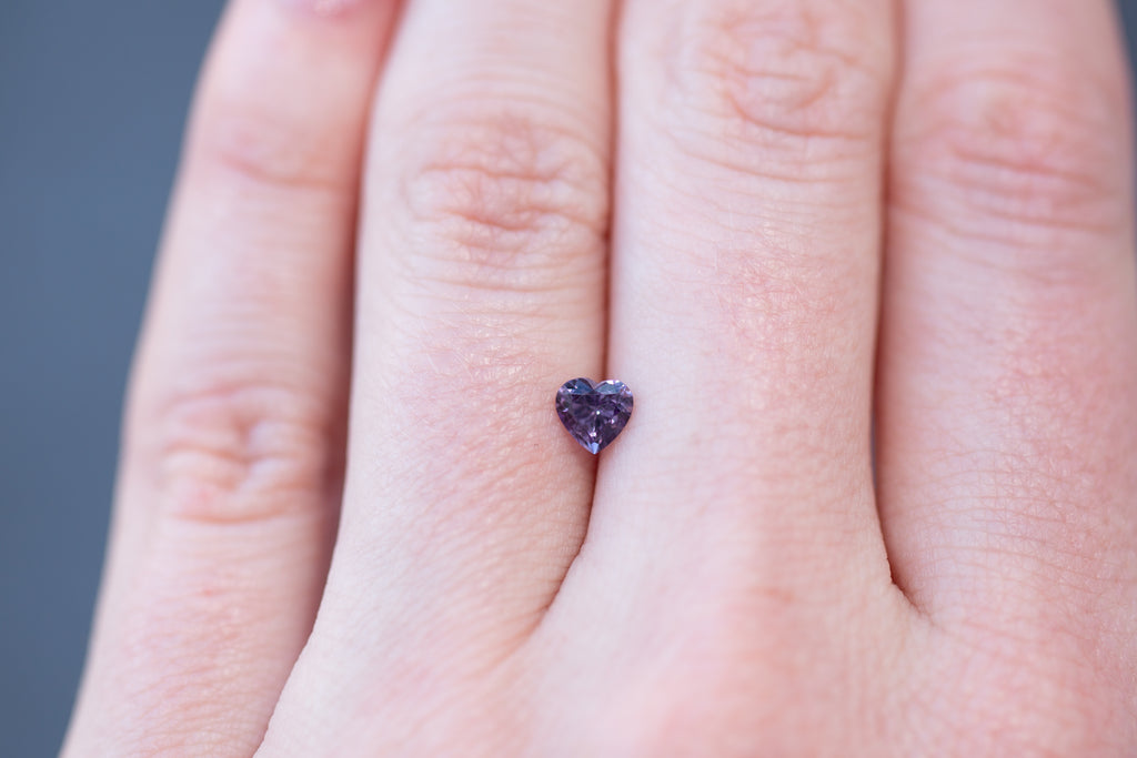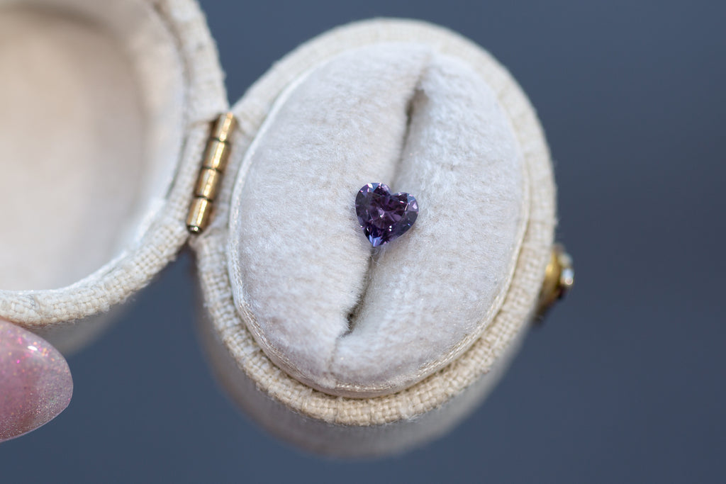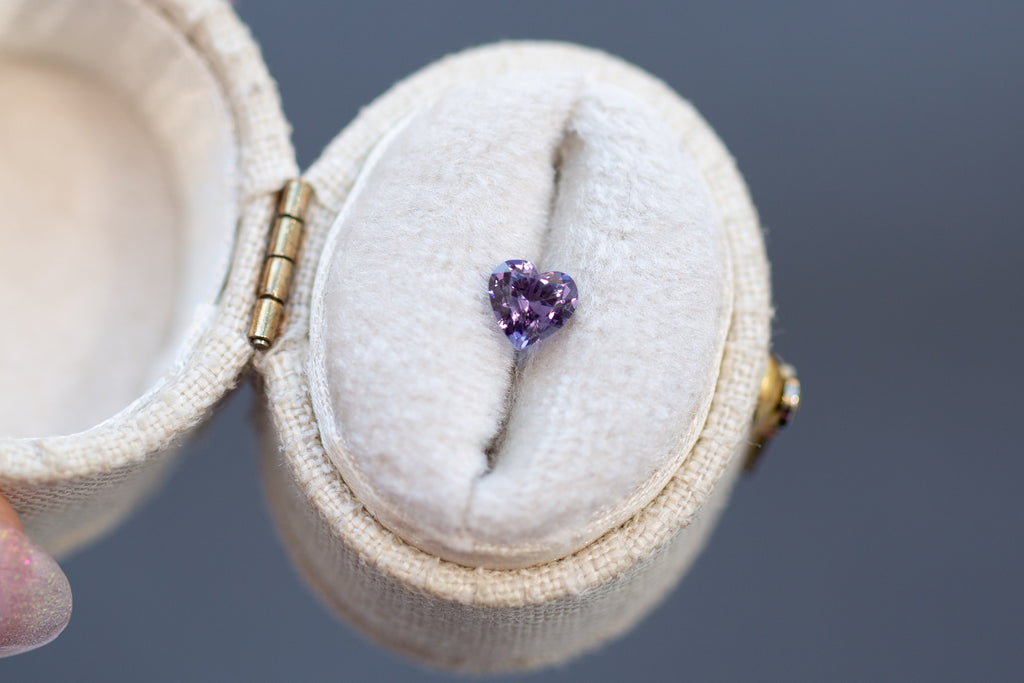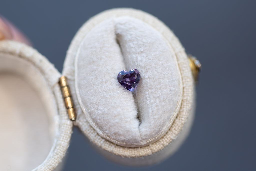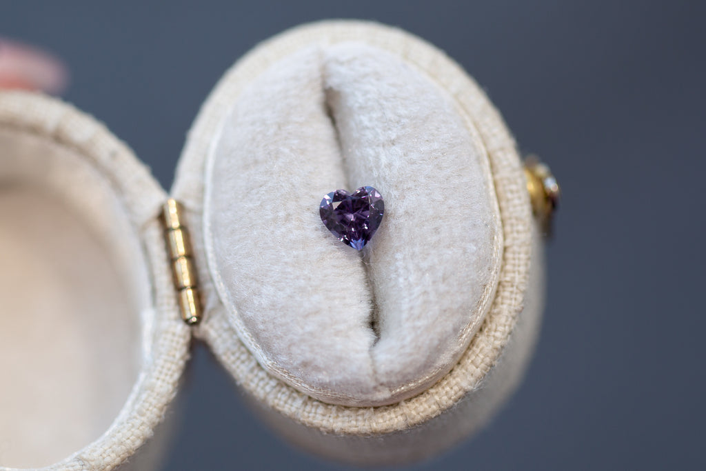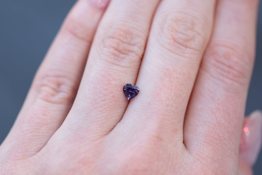 This charming heart shaped stone is a pretty plum purple color! So lovely!