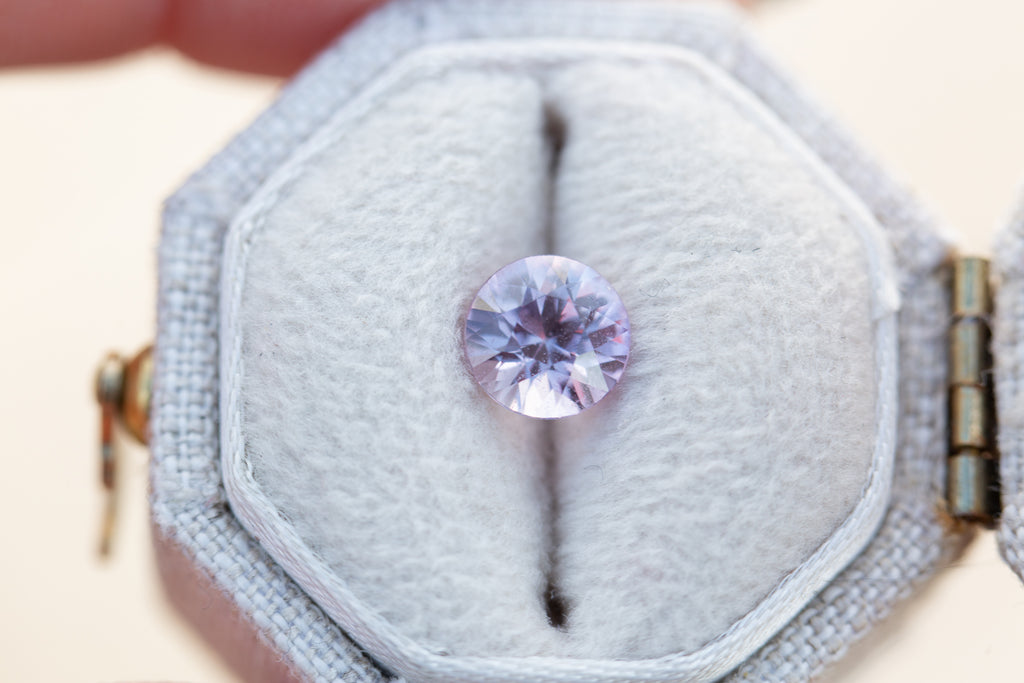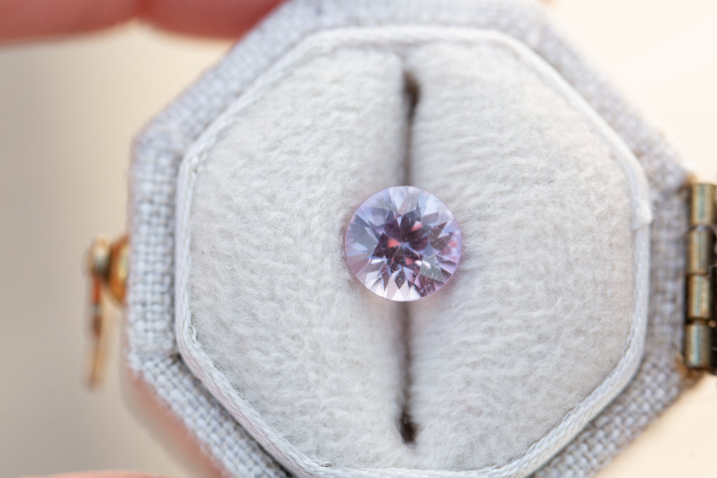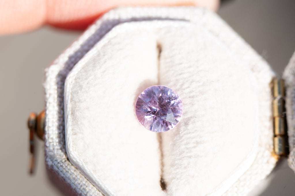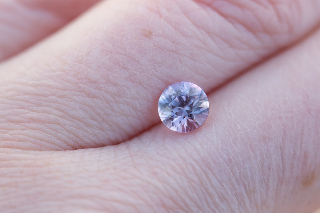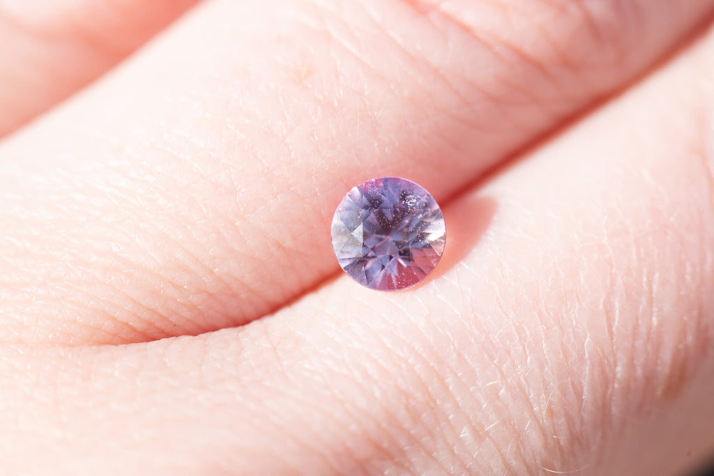 This gorgeous light pink purple sapphire shifts to a grey mauve color is some lighting - it has some incredible faceting that give it tons of sparkle!