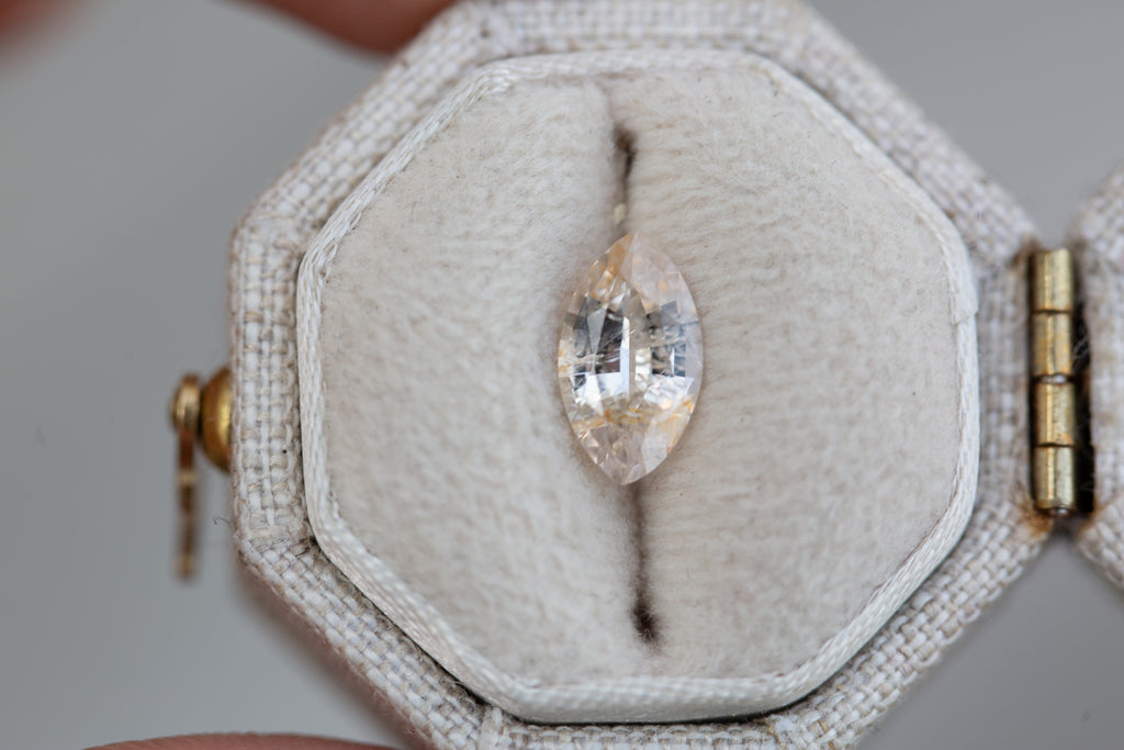 This gorgeous yellow/clear marquise sapphire has such cool and unique inclusions throughout - it will make the most special piece!