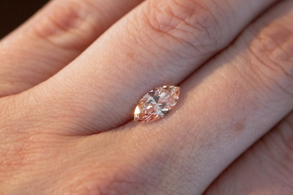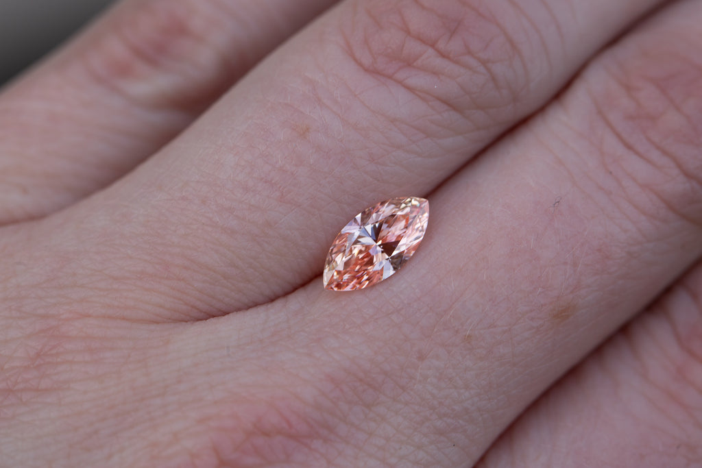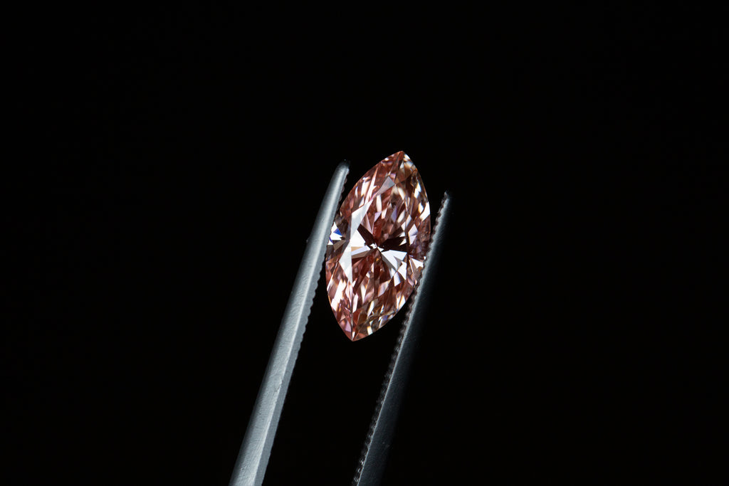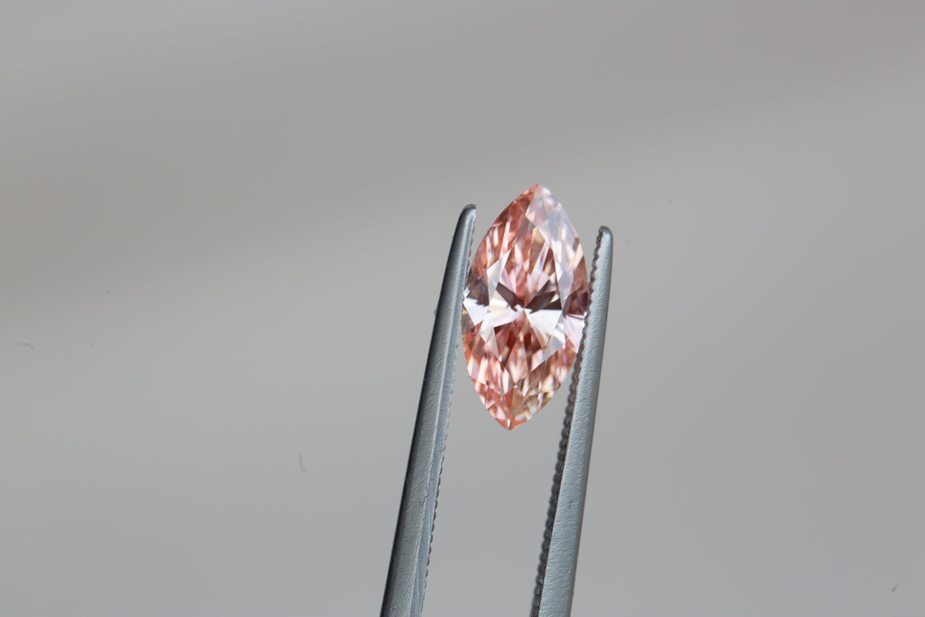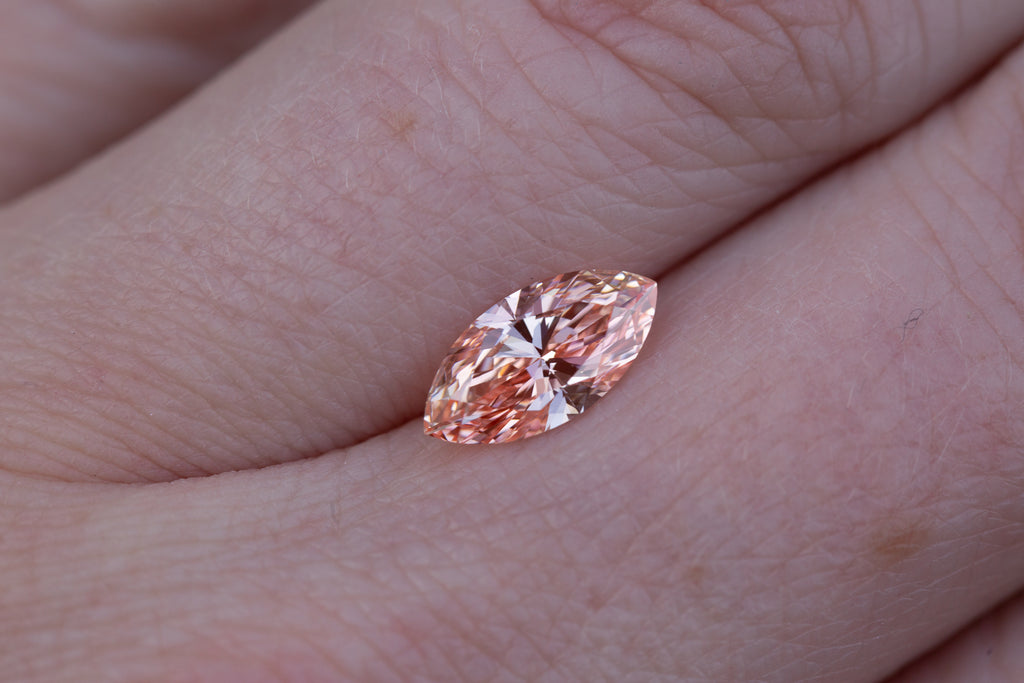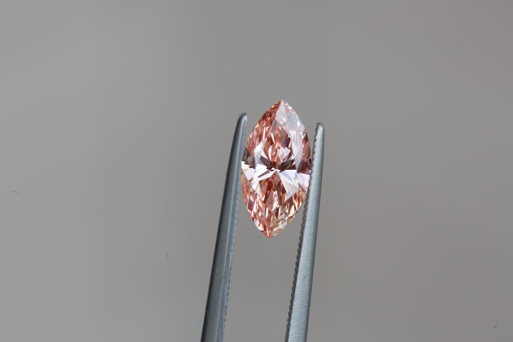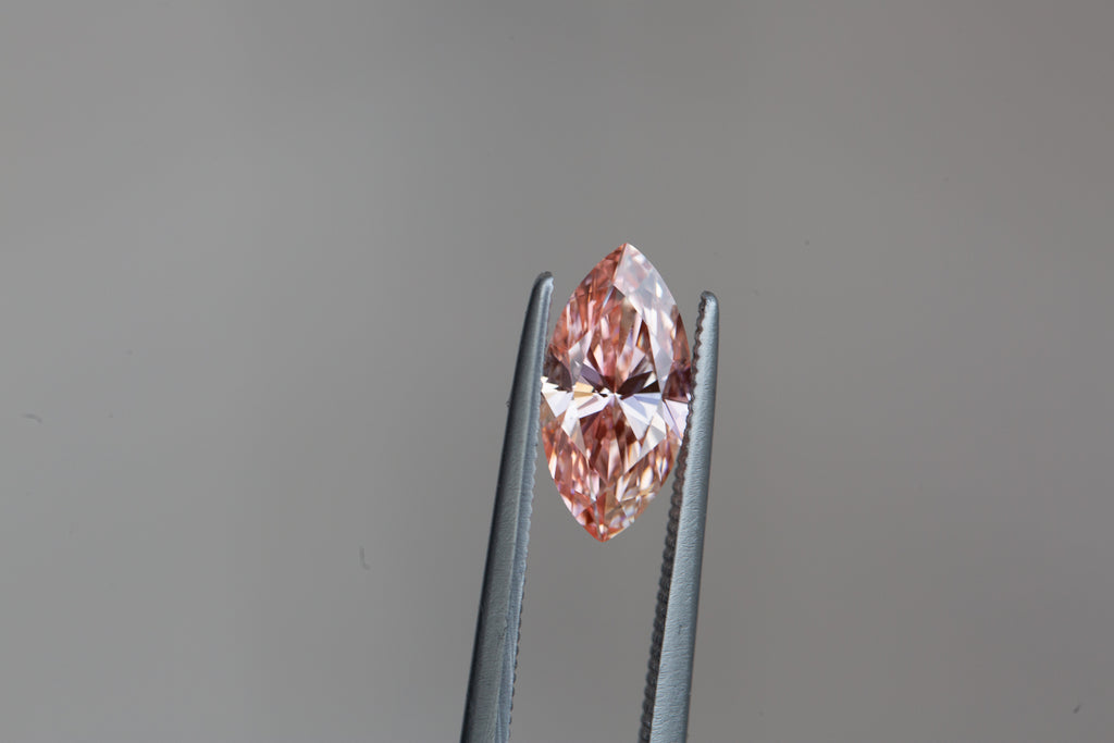 This absolutely gorgeous marquise lab diamond is such a vibrant fancy pink with the most stunning sparkle!