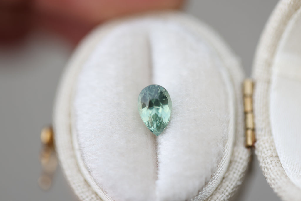 This gorgeous green mint sapphire has the prettiest coloring! Just an absolute beauty!