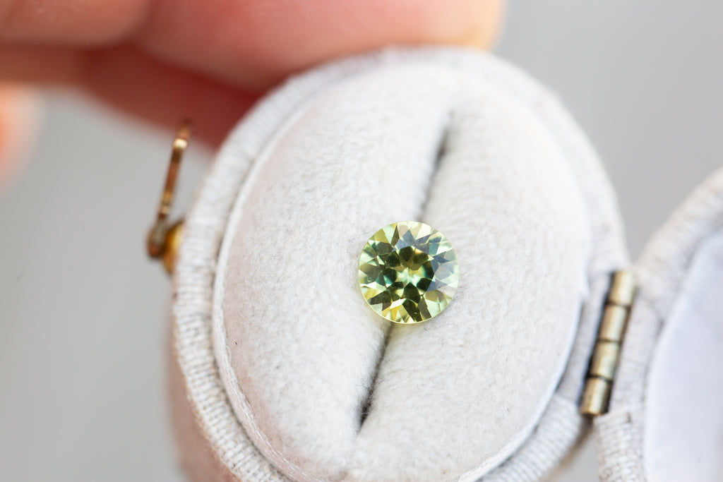 1.1ct round bright green yellow sapphire