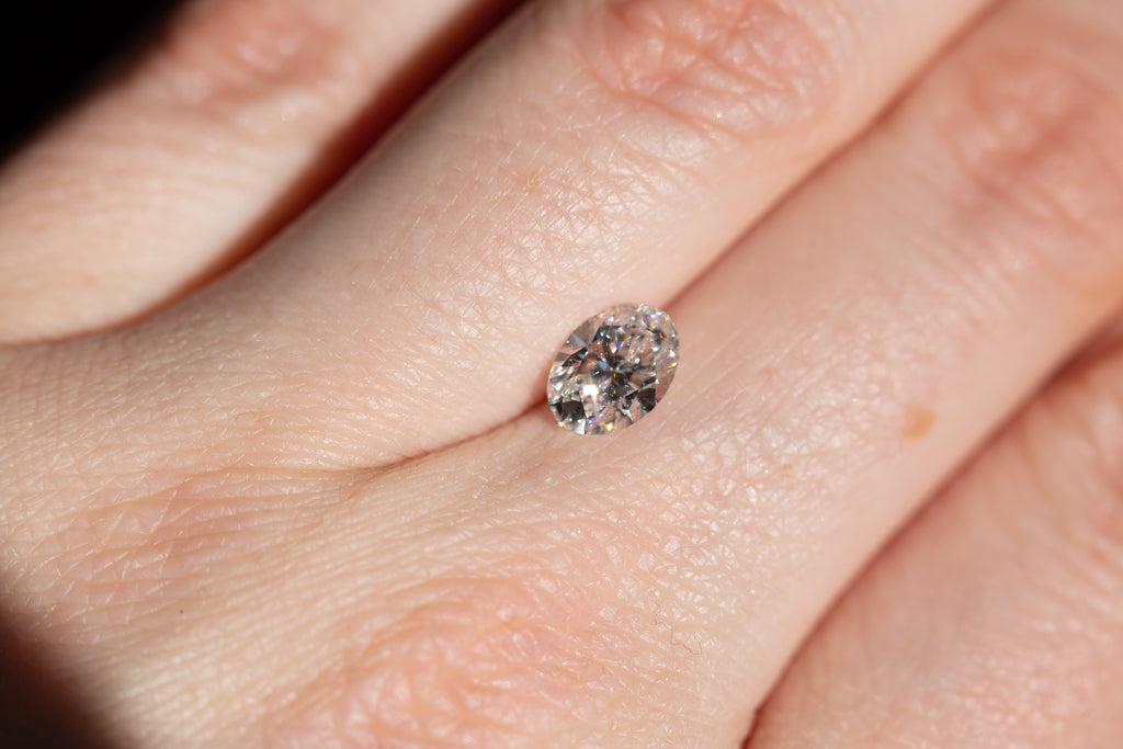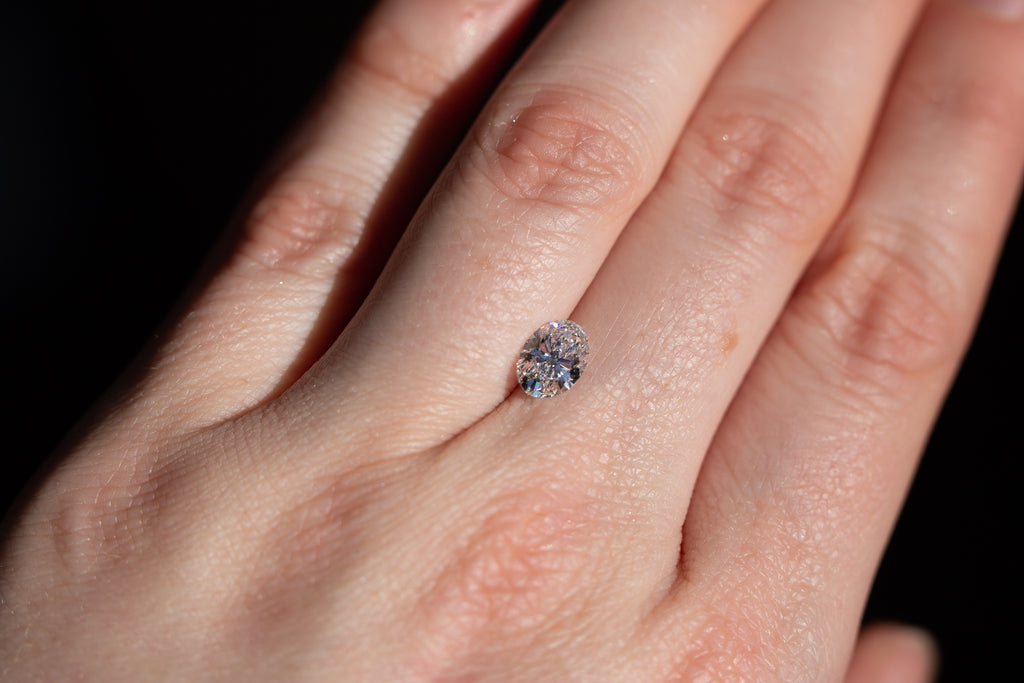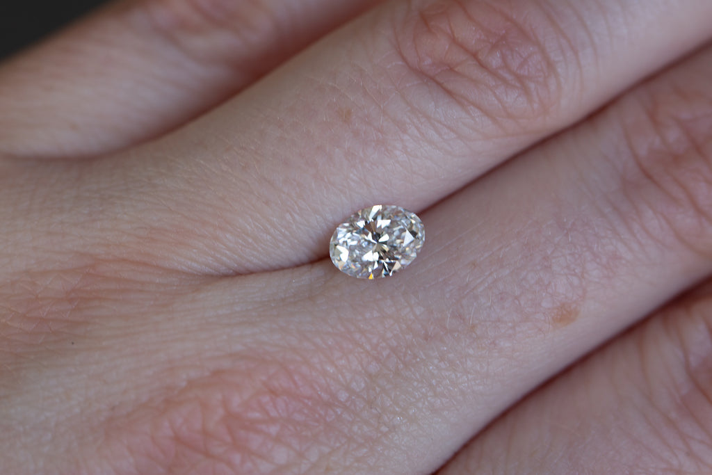 This stunning oval lab diamond is a bright white D color with tons of incredible facets for the most gorgeous sparkle!
