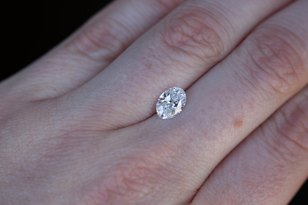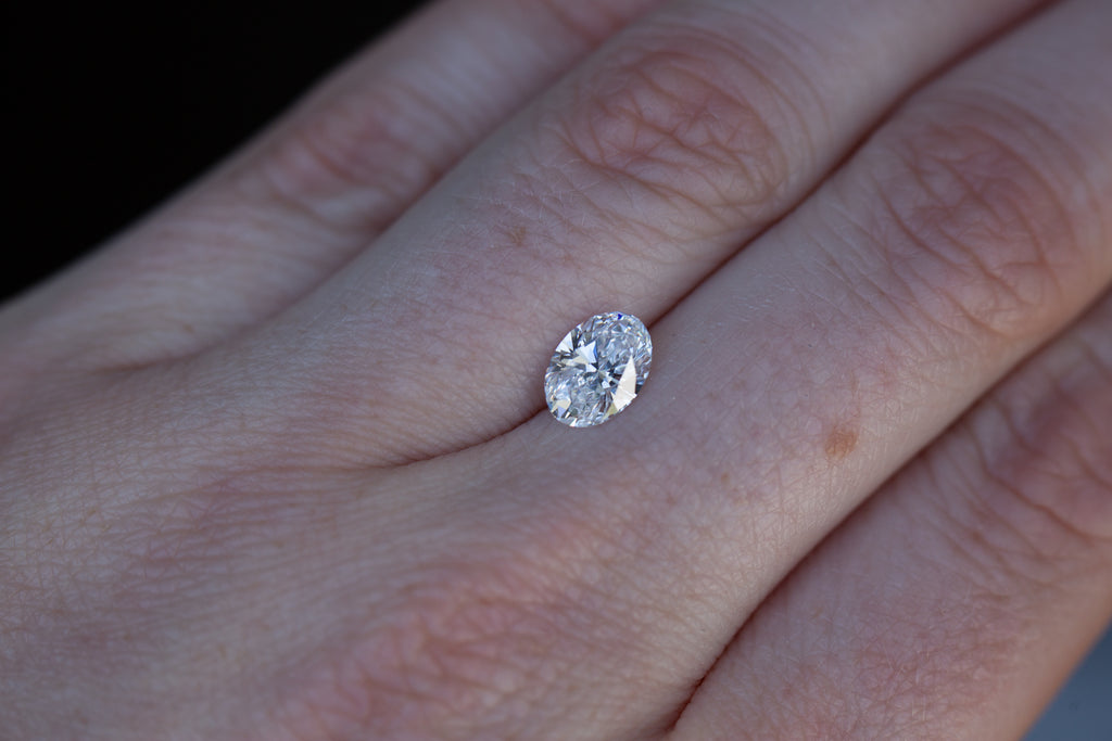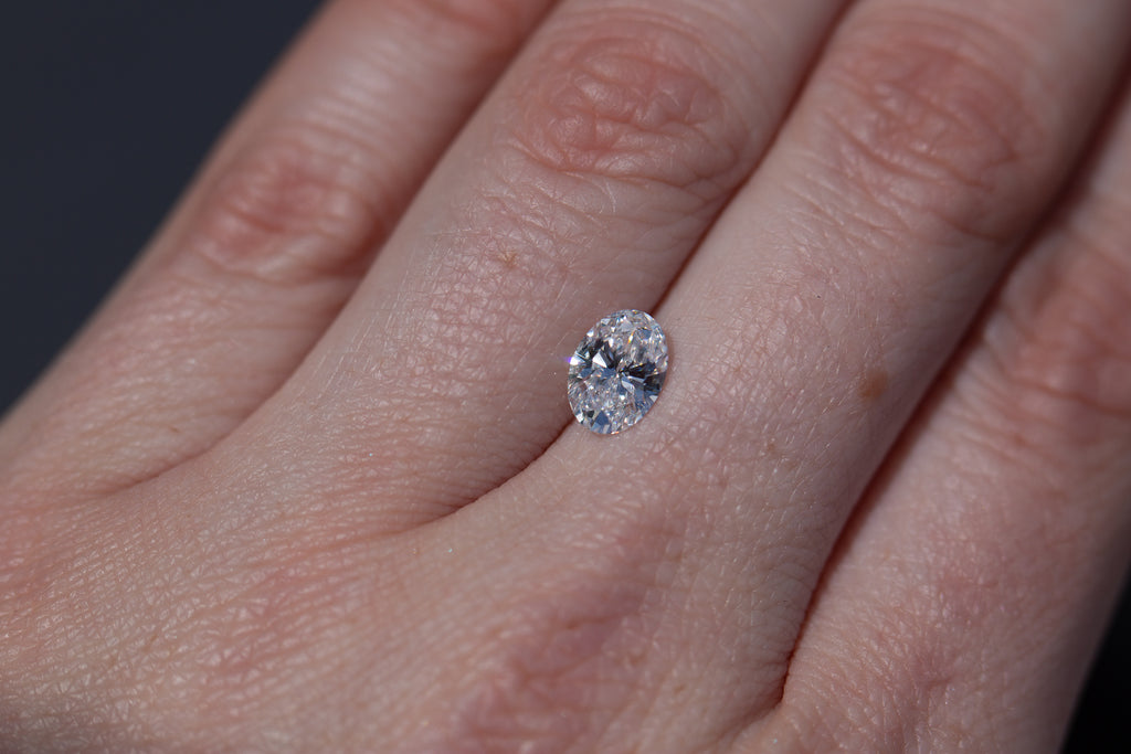 This absolute beauty is an oval lab diamond is a beautiful D color and gorgeous sparkle!