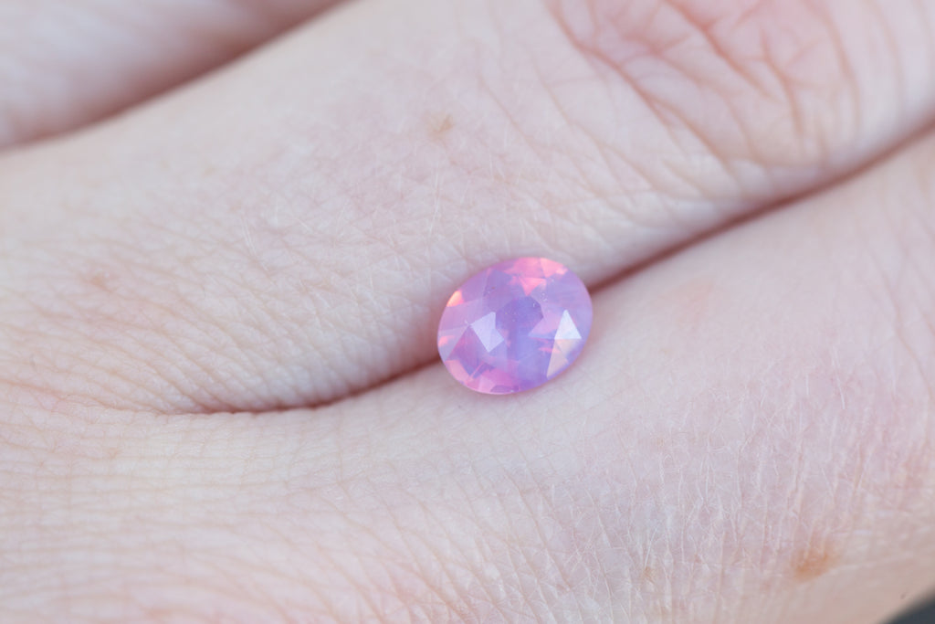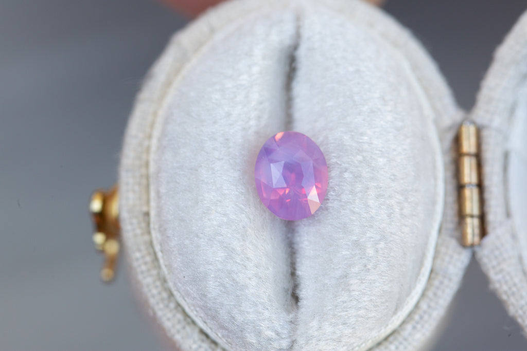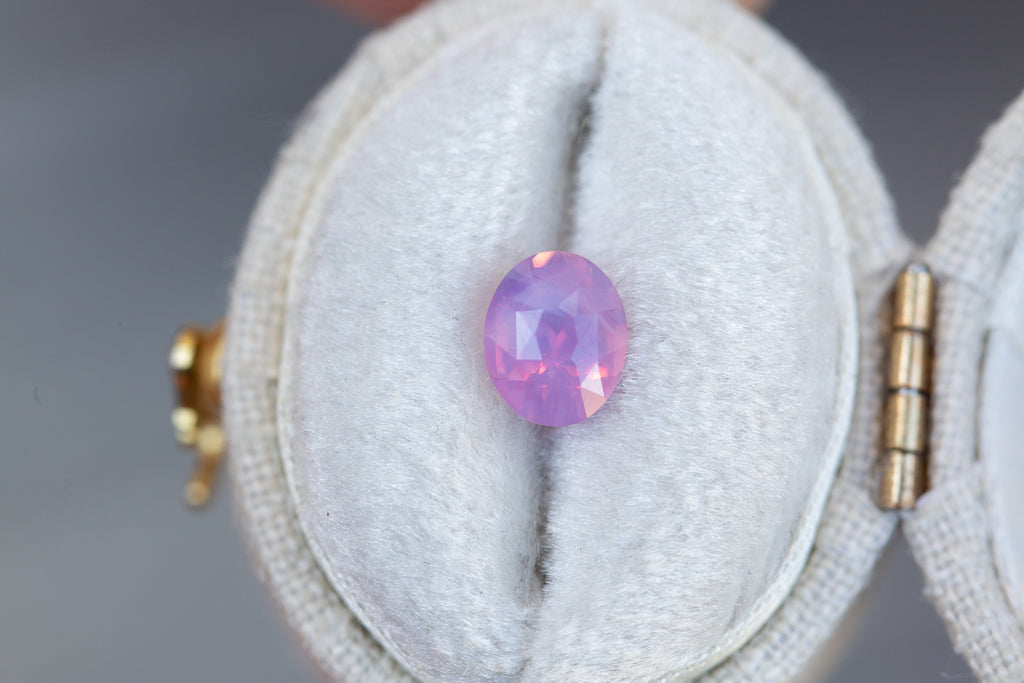 The absolute prettiest oval opalescent pink sapphire! It is such a beauty and will make an incredibly special piece!