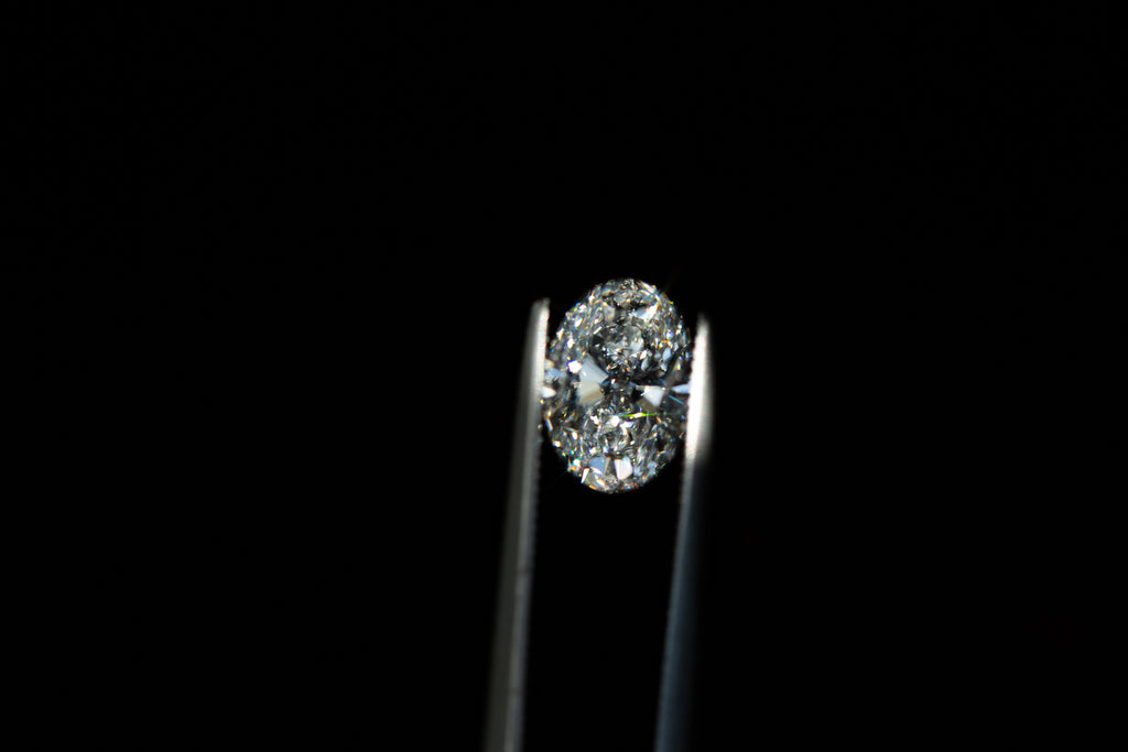 This gorgeous oval lab diamond is a bright D color with beautiful faceting for tons of sparkle!