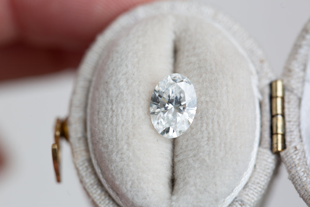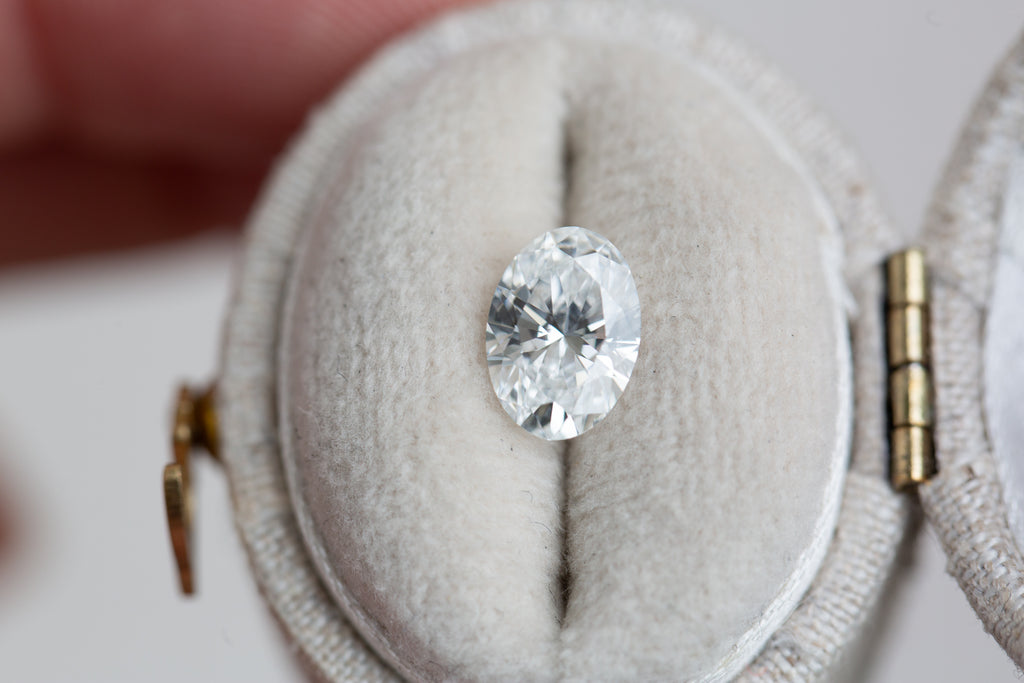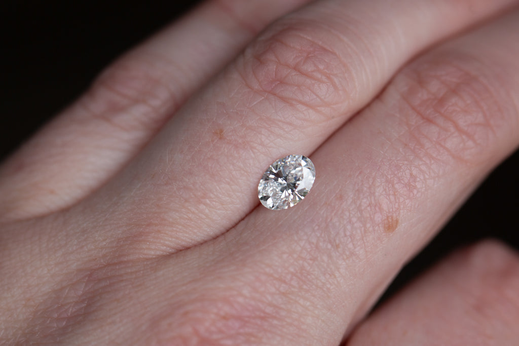 This absolute beauty is an oval lab diamond with tons of the most gorgeous sparkle!