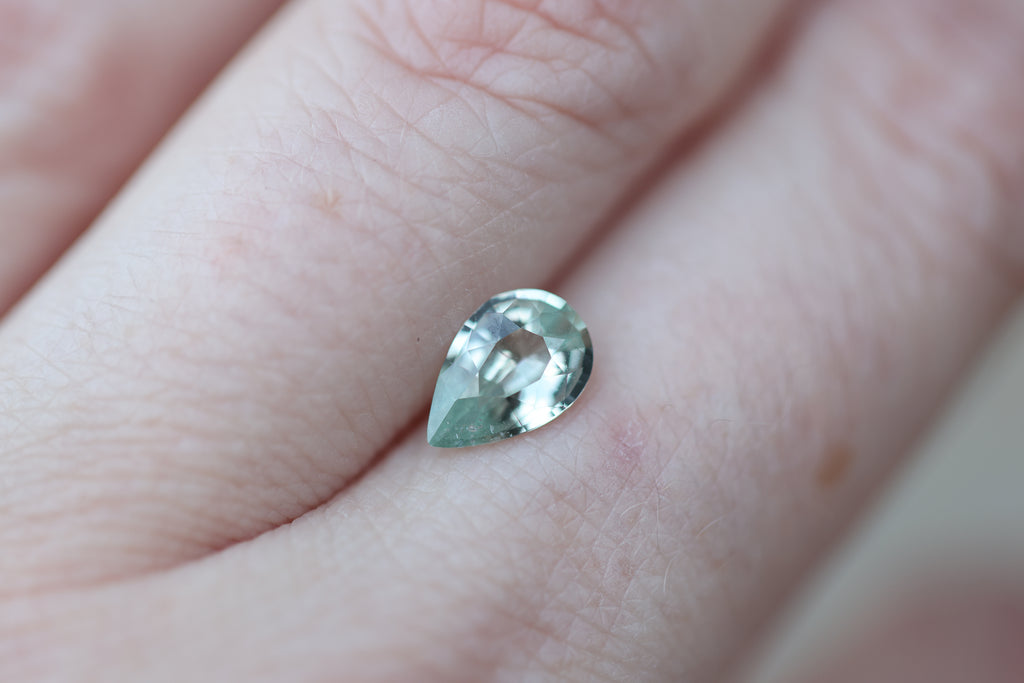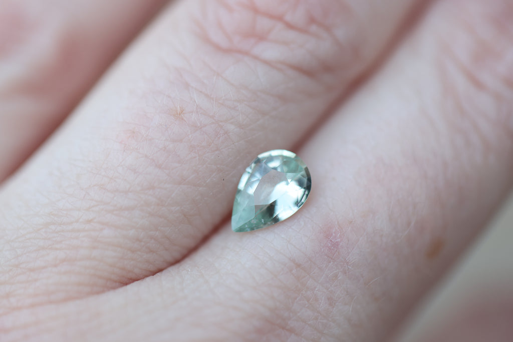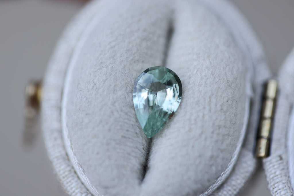 This beautiful pear mint sapphire has such pretty icy coloring - a gorgeous stone!