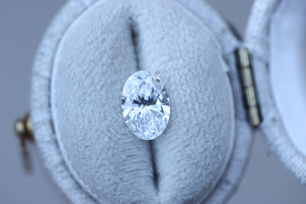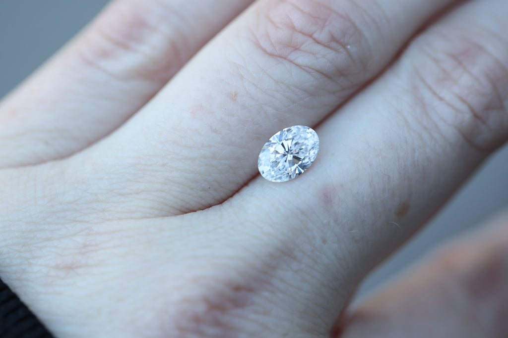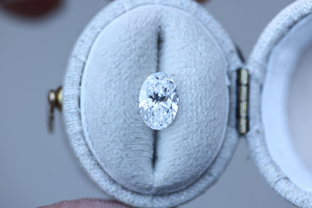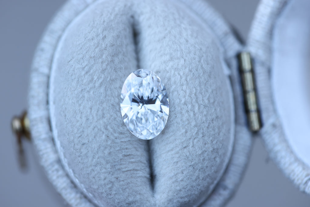 This gorgeous oval lab diamond has such beautiful sparkle and bright D color!