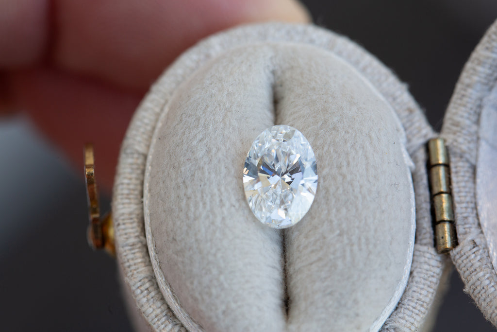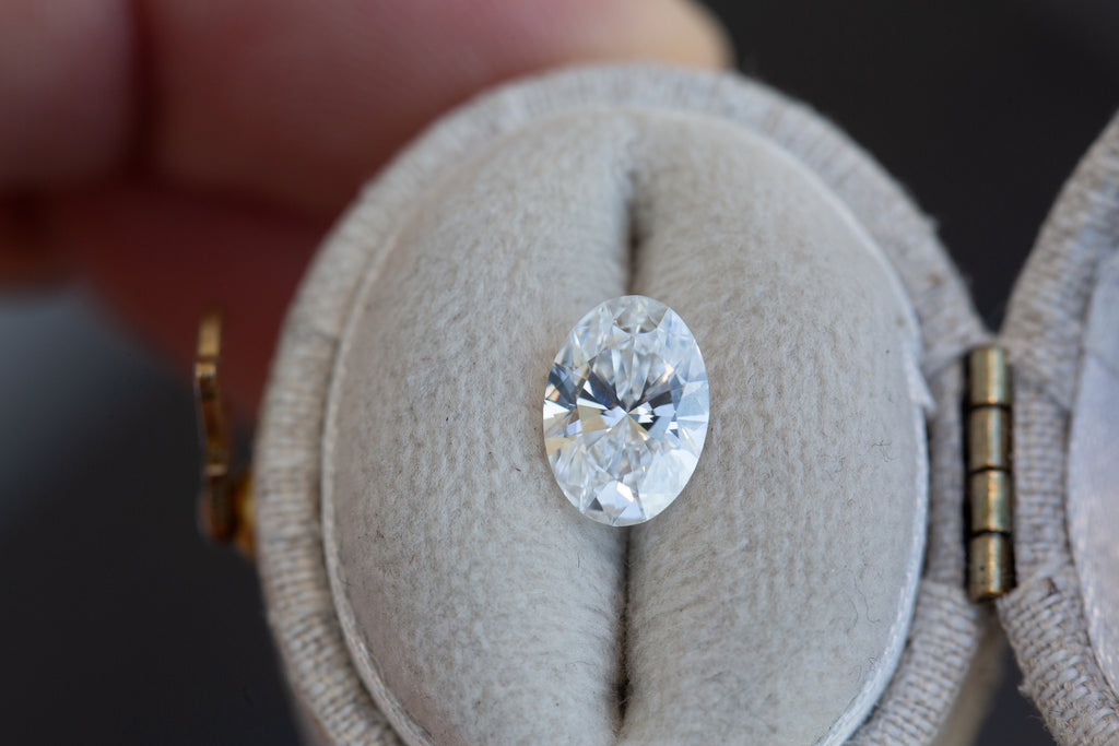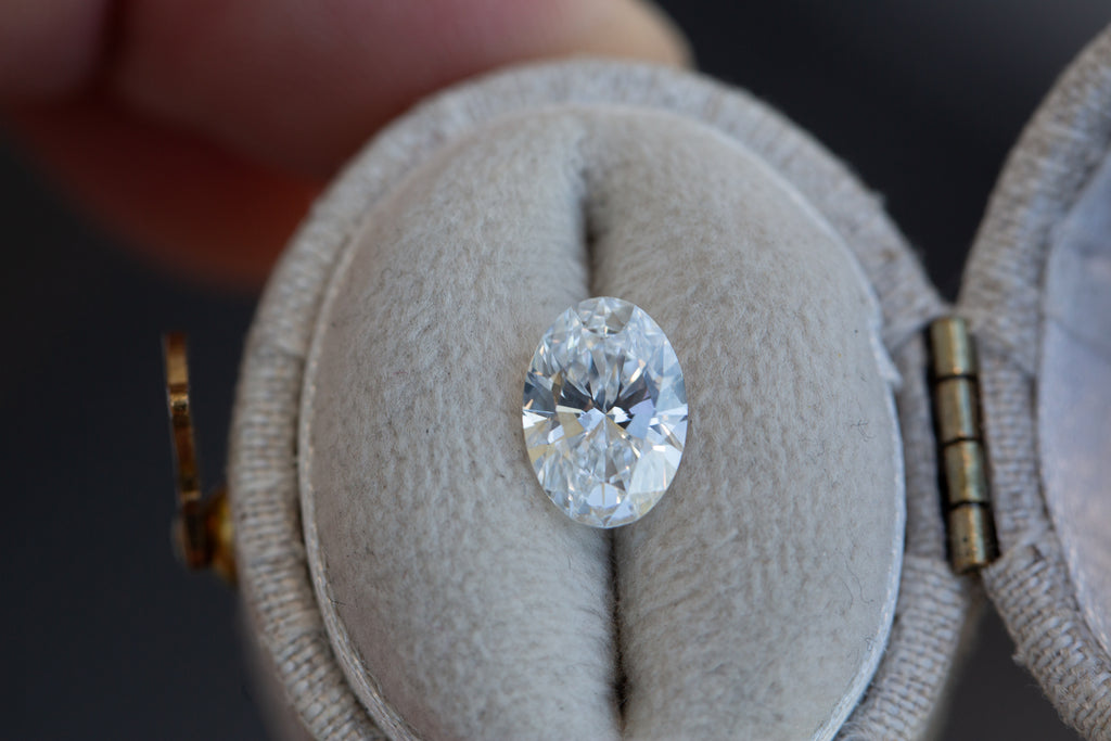 This absolutely gorgeous oval lab diamond is a bright and beautiful D color with the most incredible sparkle!