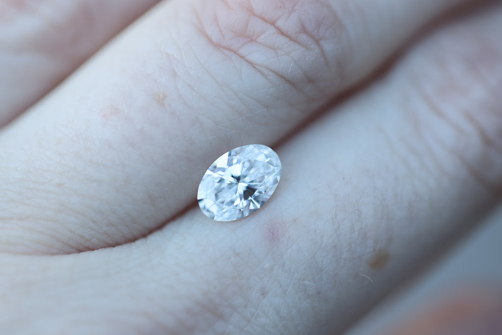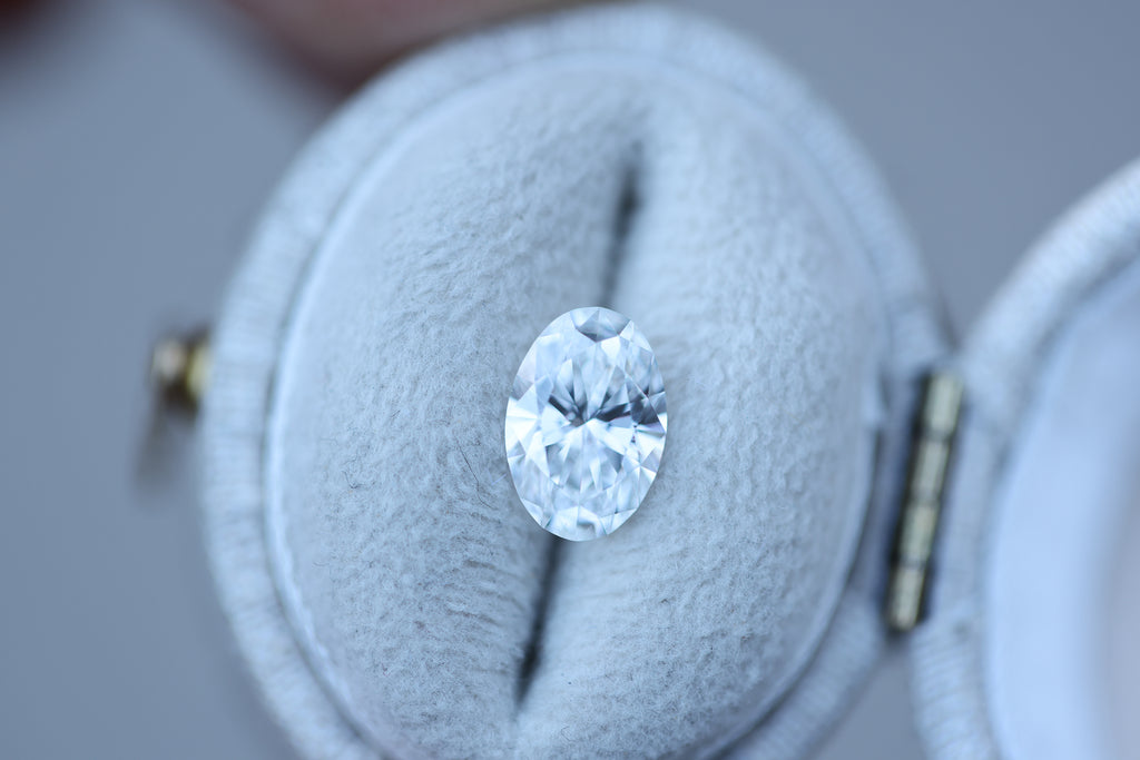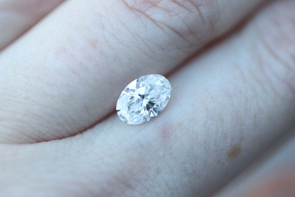 This beauty is an oval lab diamond with the most incredible sparkle - absolutely gorgeous!