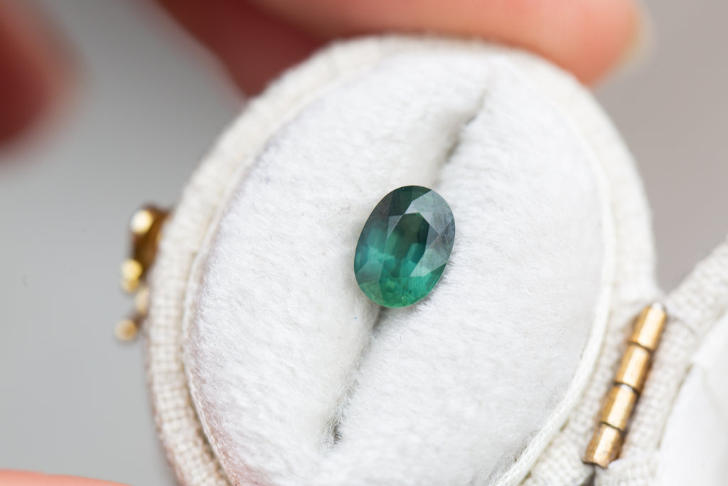 This absolutely gorgeous opalescent green sapphire has such stunning coloring and the most magical ethereal vibe!