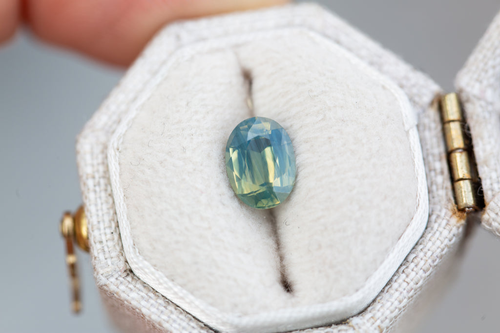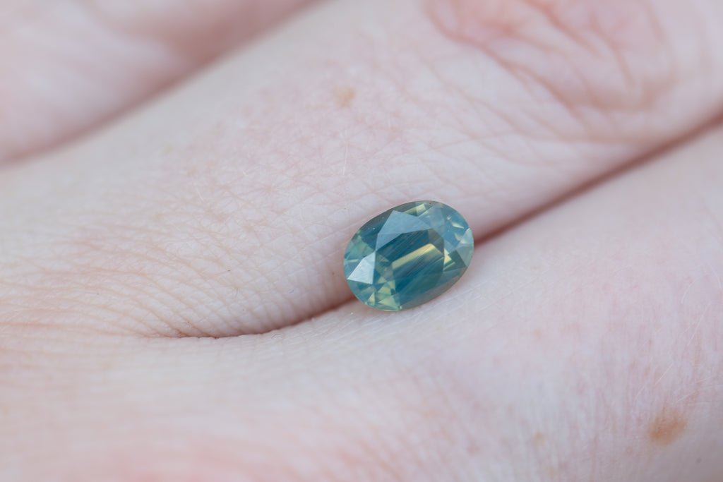 This gorgeous oval opalescent green teal sapphire has just the loveliest coloring - like sunlight peaking through the ocean waters - it is such a beauty!