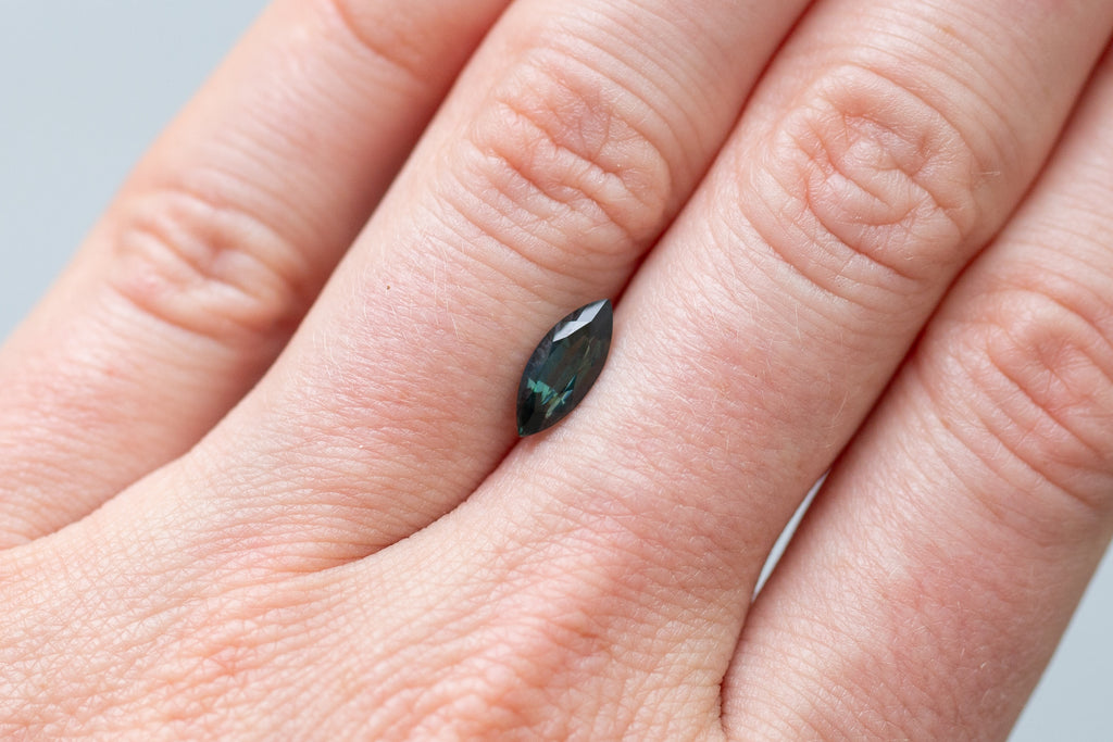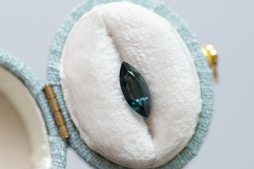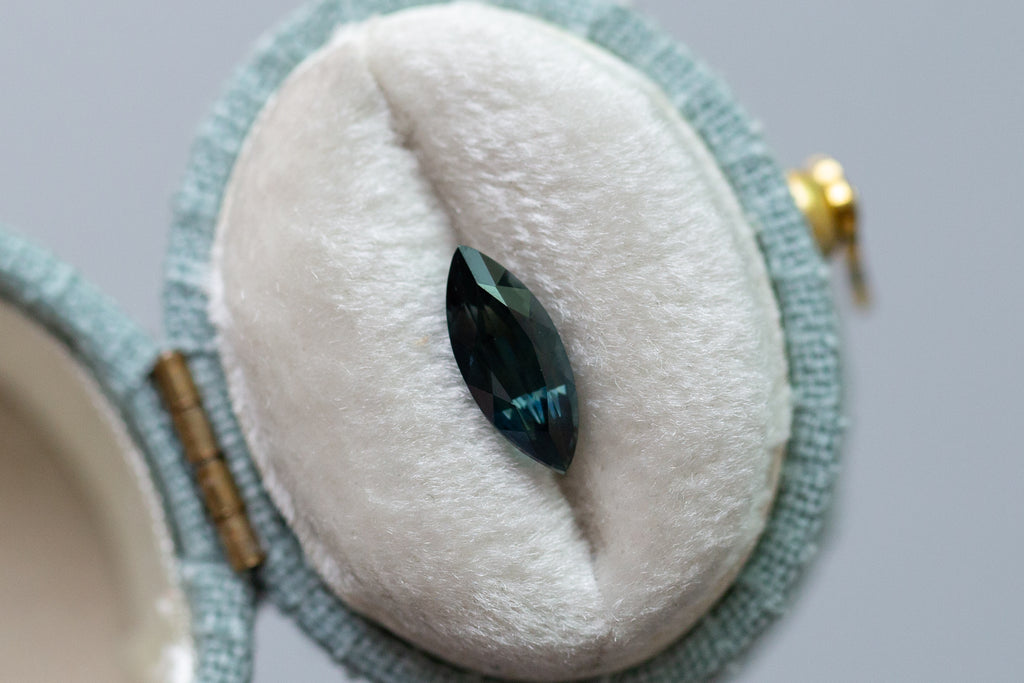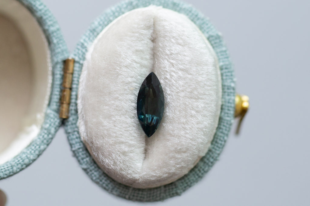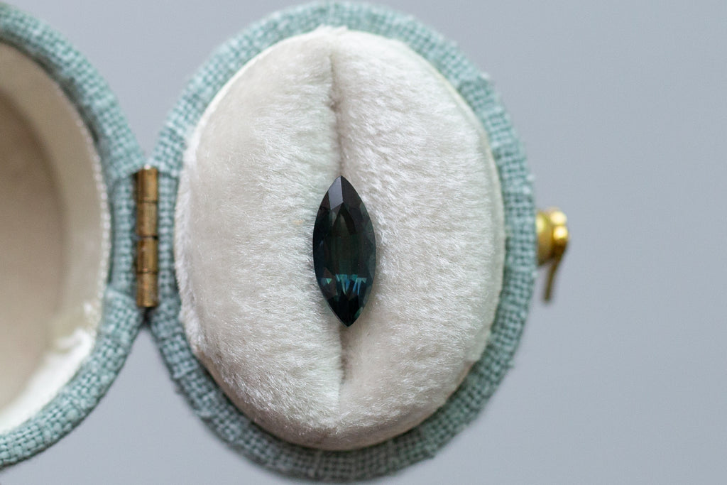 This stone is perfectly moody deep teal color and is going to make the most unique ring!