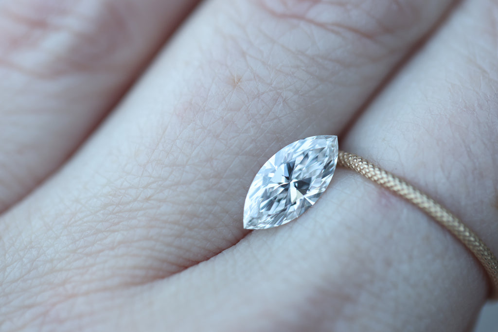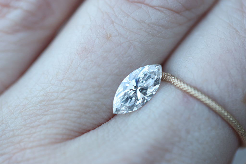 This absolute beauty is a marquise lab diamond with the most stunning sparkle!