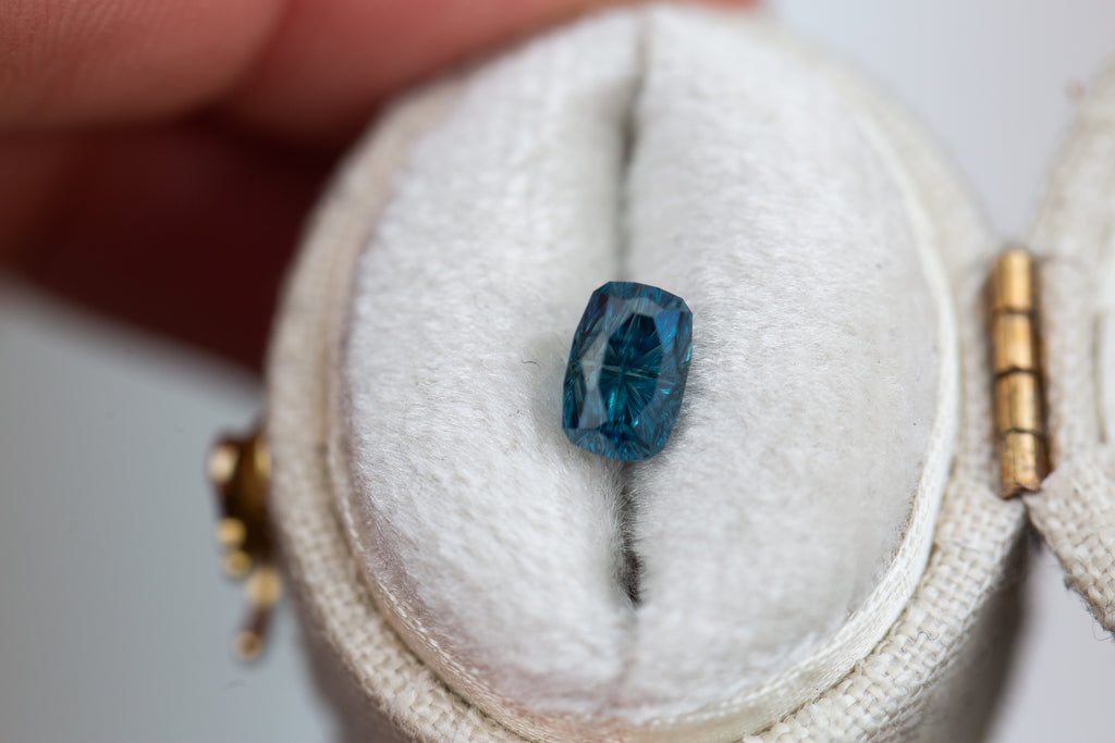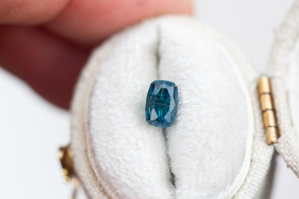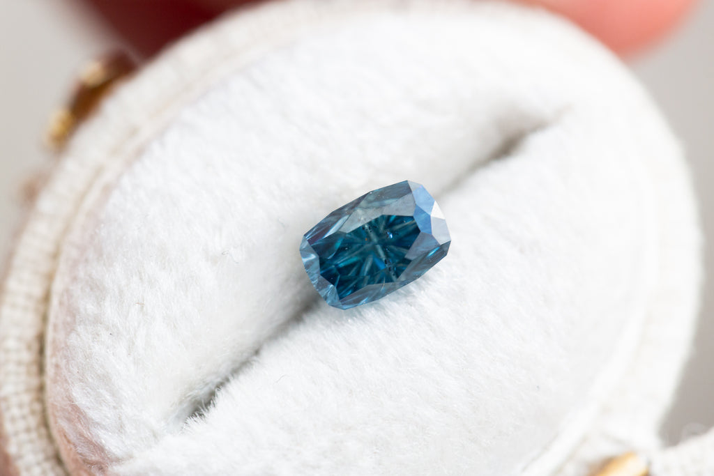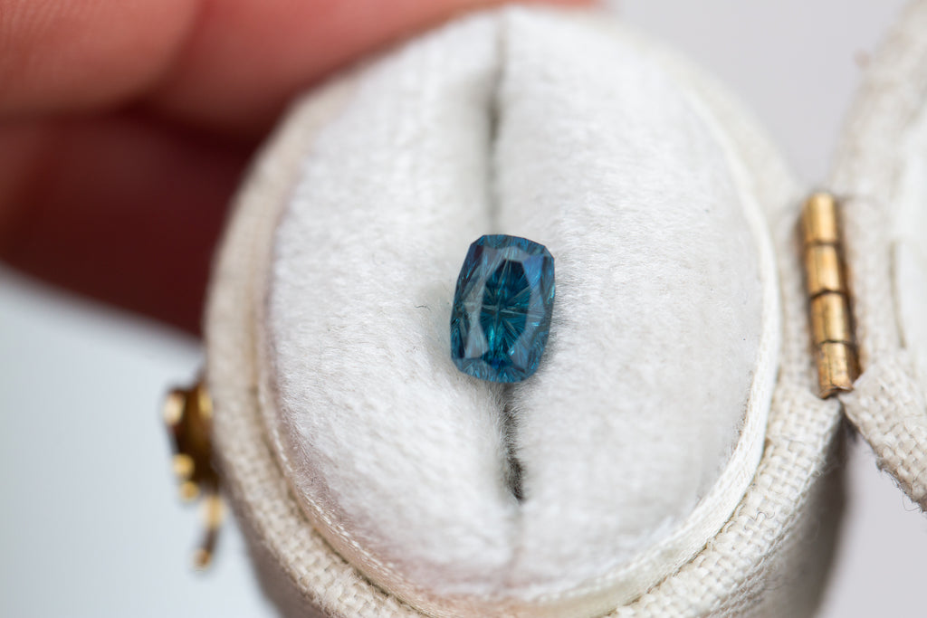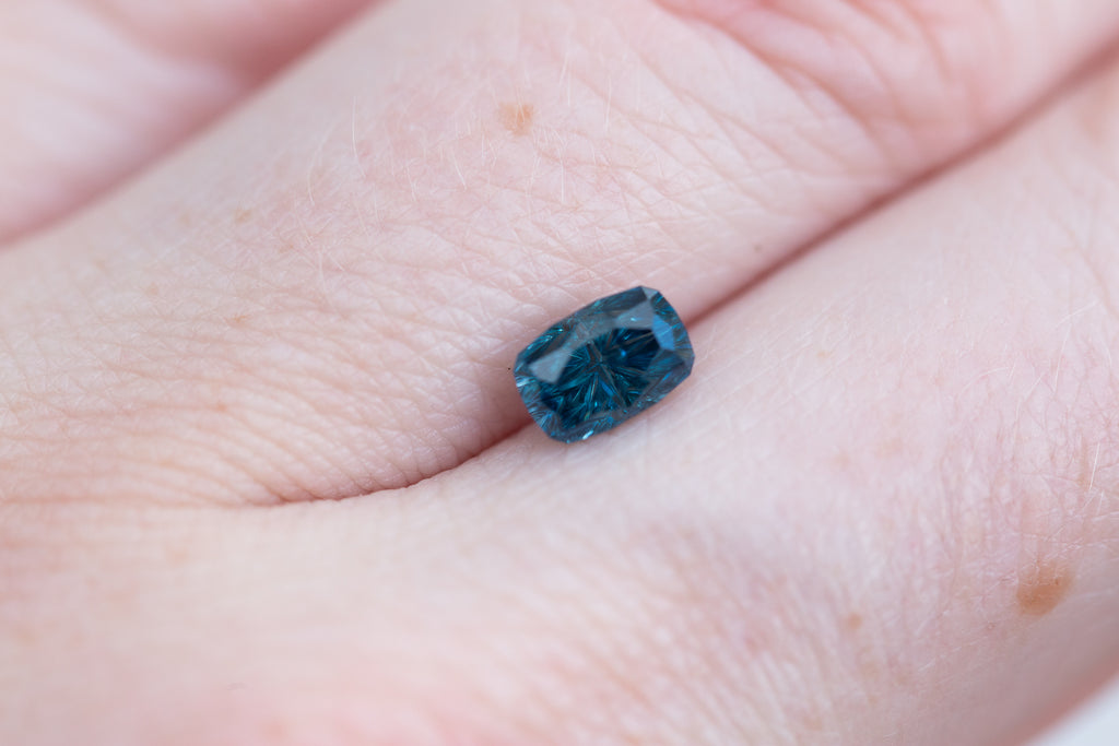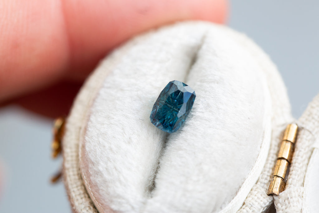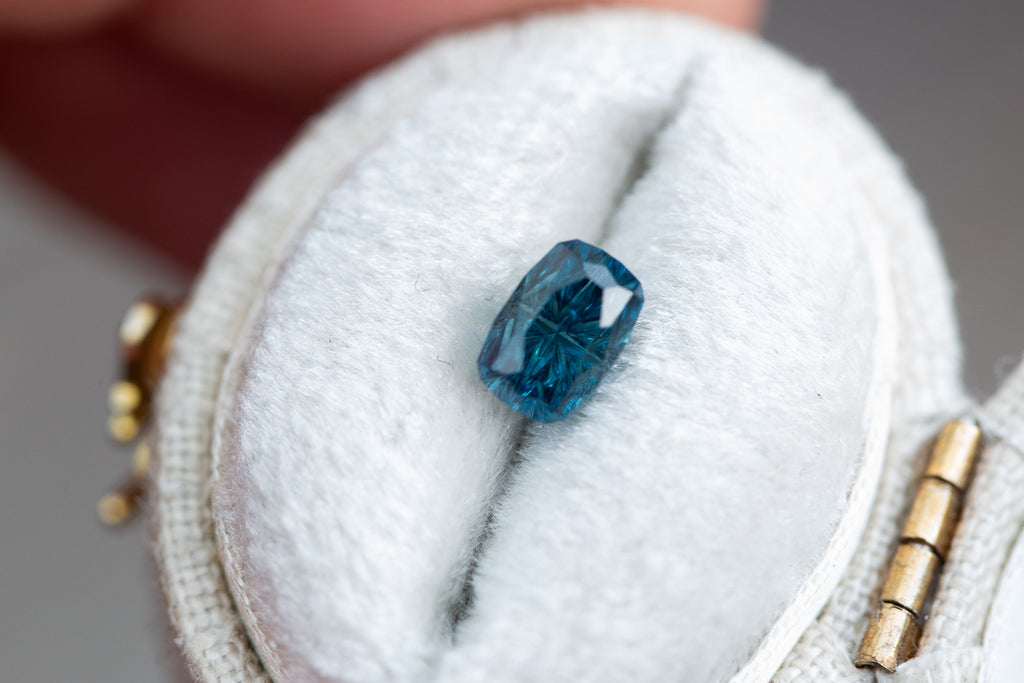 1.2ct teal blue cushion cut sapphire- Starbrite cut by John Dyer