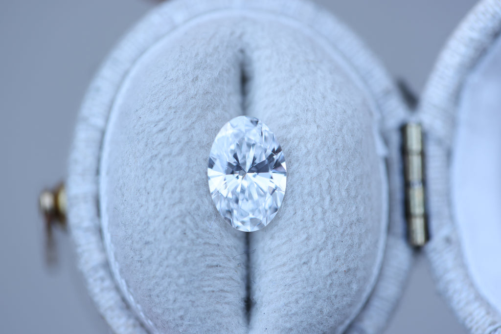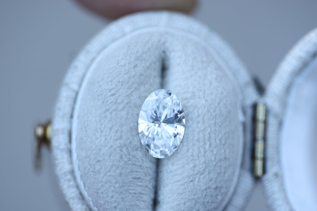 This gorgeous oval lab diamond is a bright D color with stunning sparkle!