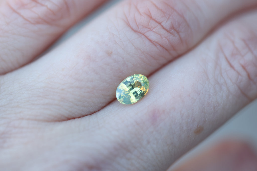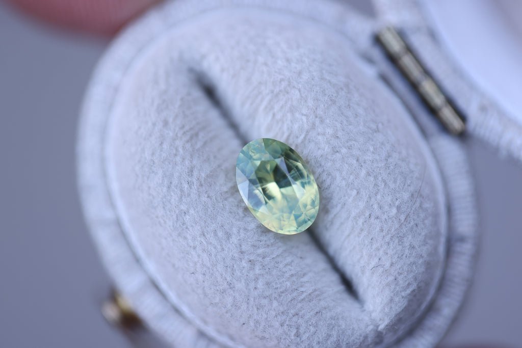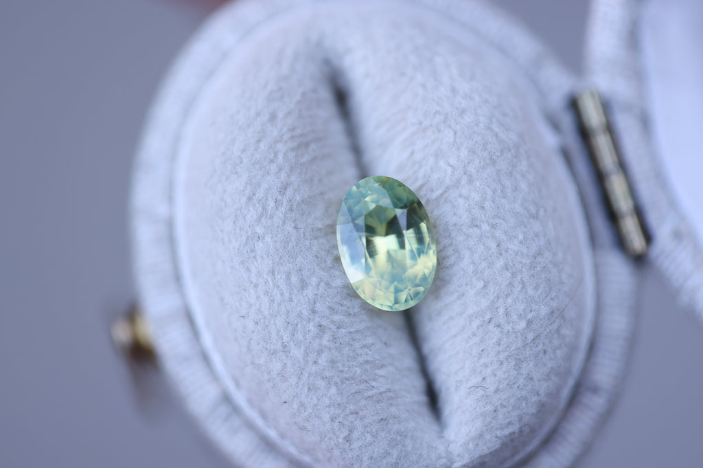 This gorgeous opalescent sapphire is such a magical stone! It has the prettiest green teal yellow coloring and such special ethereal opalescence!