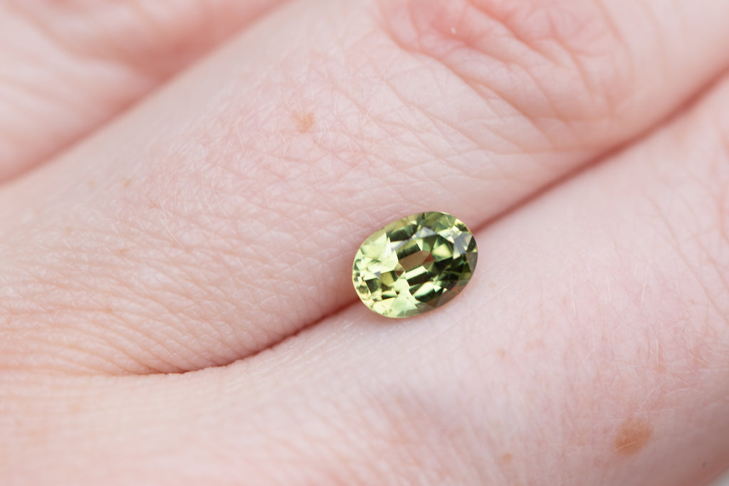 This gorgeous oval medium green sapphire is so bright and sparkly!