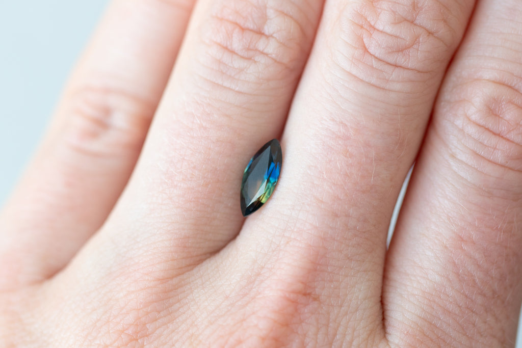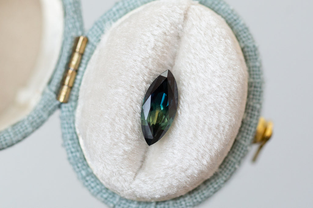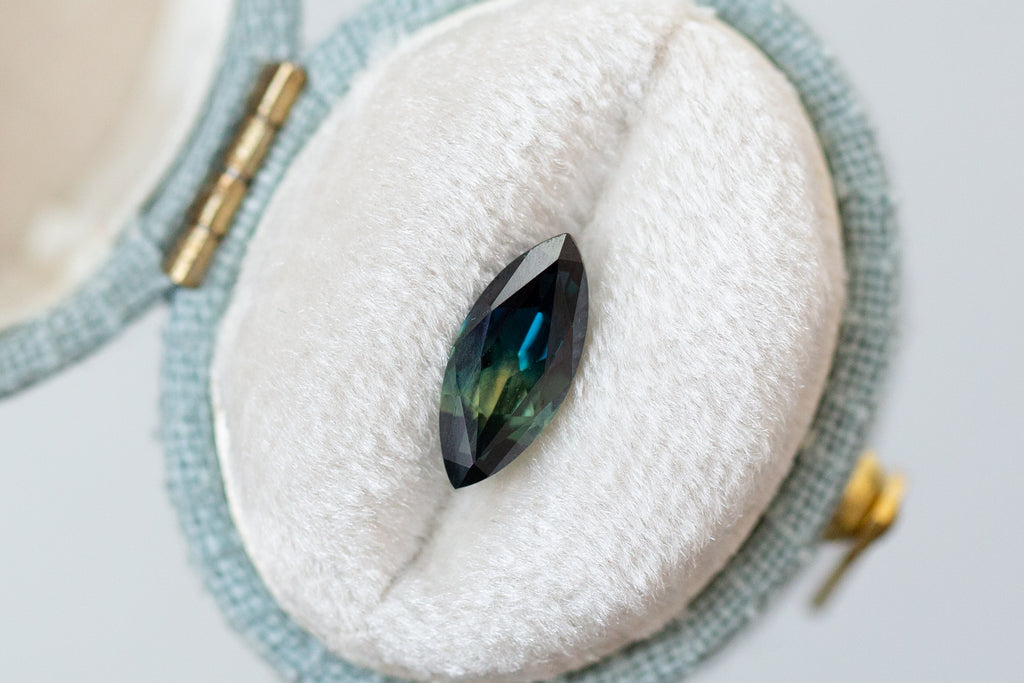 1.36ct Marquise Deep Green Blue Yellow Sapphire