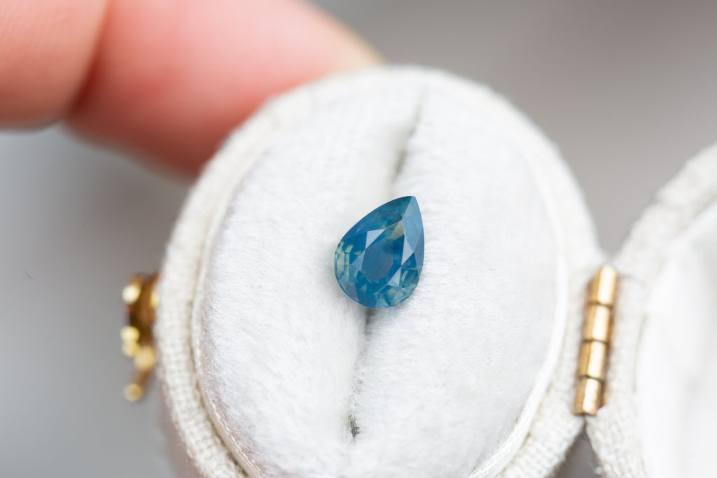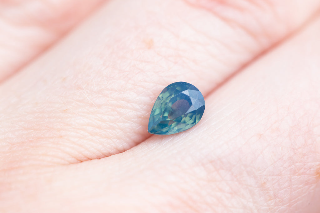 This ethereal beauty is a pear opalescent blue teal sapphire that has the prettiest aqua goddess vibe!