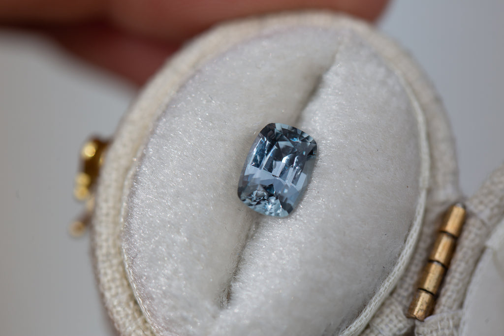 This absolutely stunning grey cushion cut sapphire is such a cool moody gem that will make the most gorgeous piece!