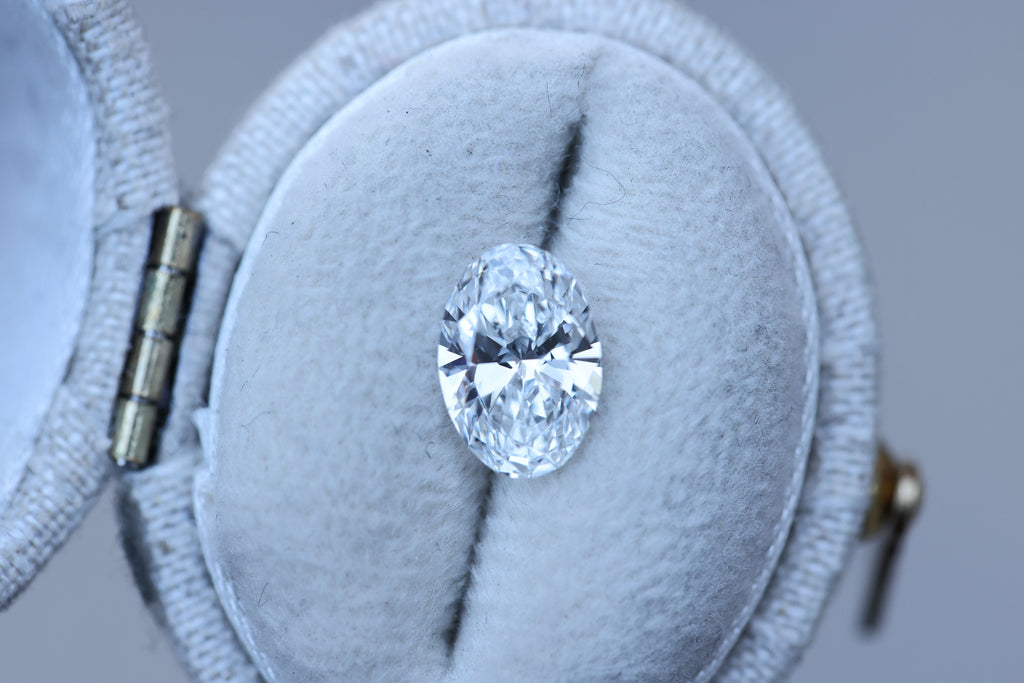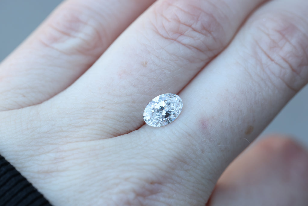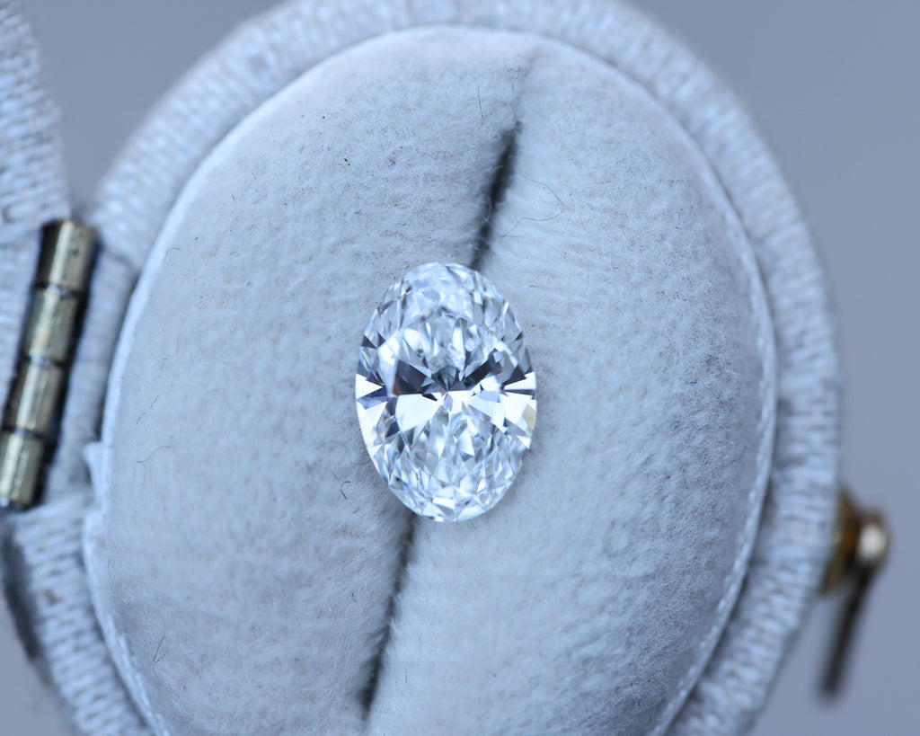 This gorgeous oval lab diamond has such incredible sparkle! An absolute beauty!