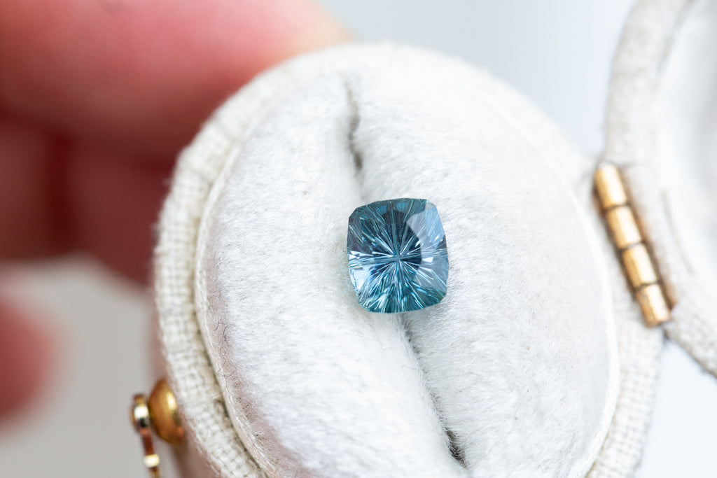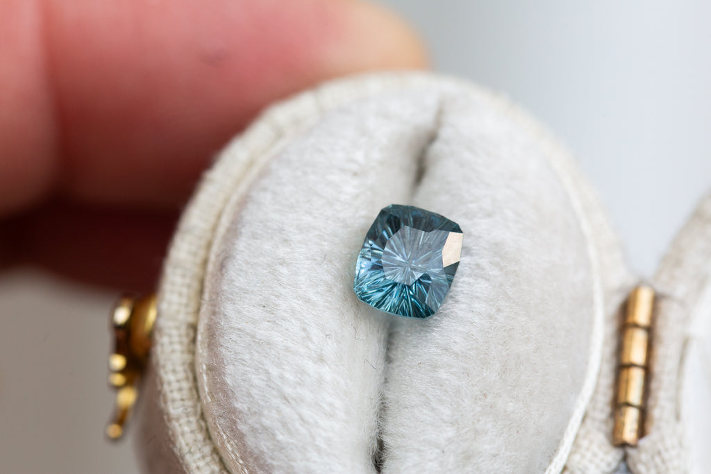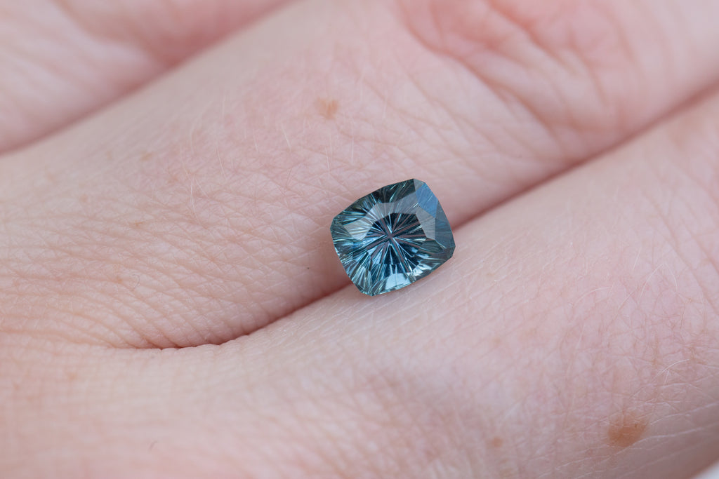 1.42ct cushion cut teal blue sapphire- Starbrite cut by John Dyer