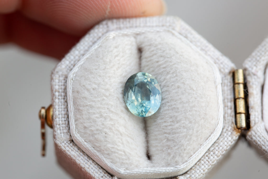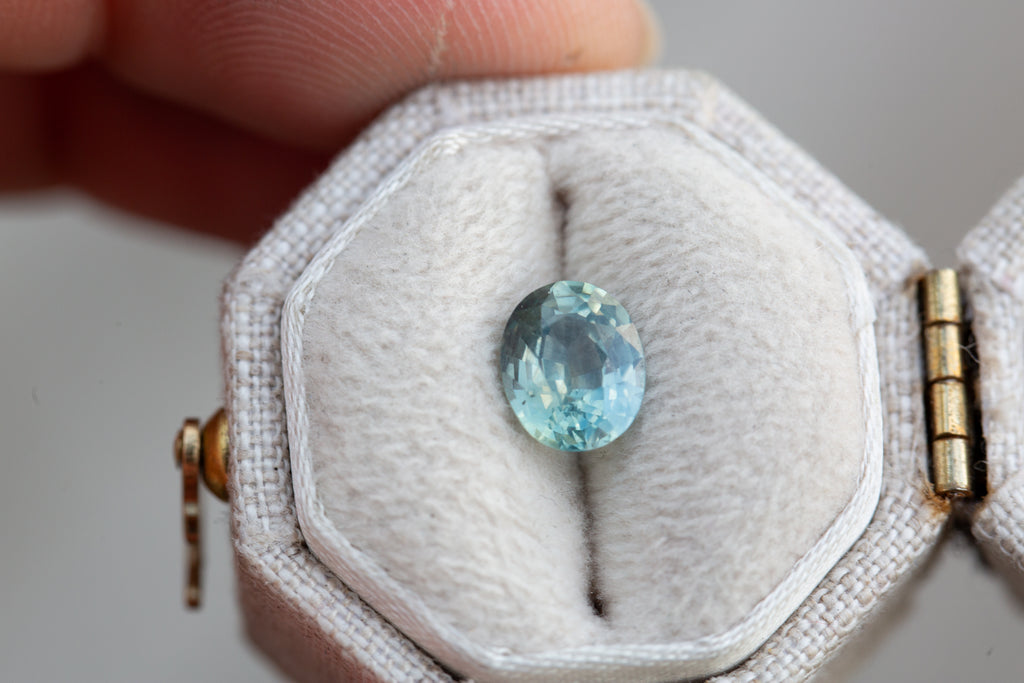 This beautiful oval teal sapphire has such gorgeous coloring and incredible sparkle - just an absolute stunner!